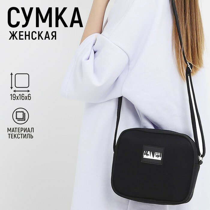 Сумка женская из текстиля с нашивкой, "Взгляд", 19*16*6 см 9353070