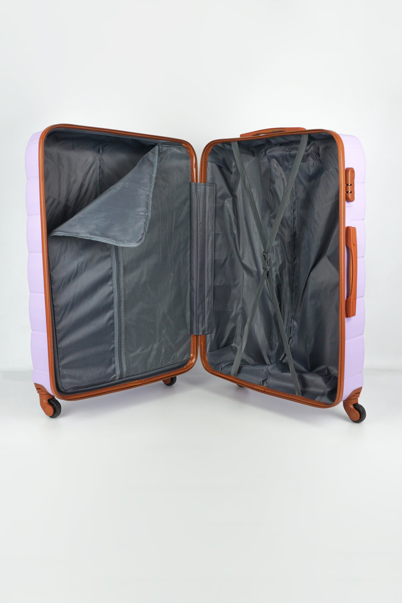Купить Чемодан Sweetbags (Lotus) большой из ABS пластика на 4-х съемных колесах с кодовым замком сиреневый с коричневым L
