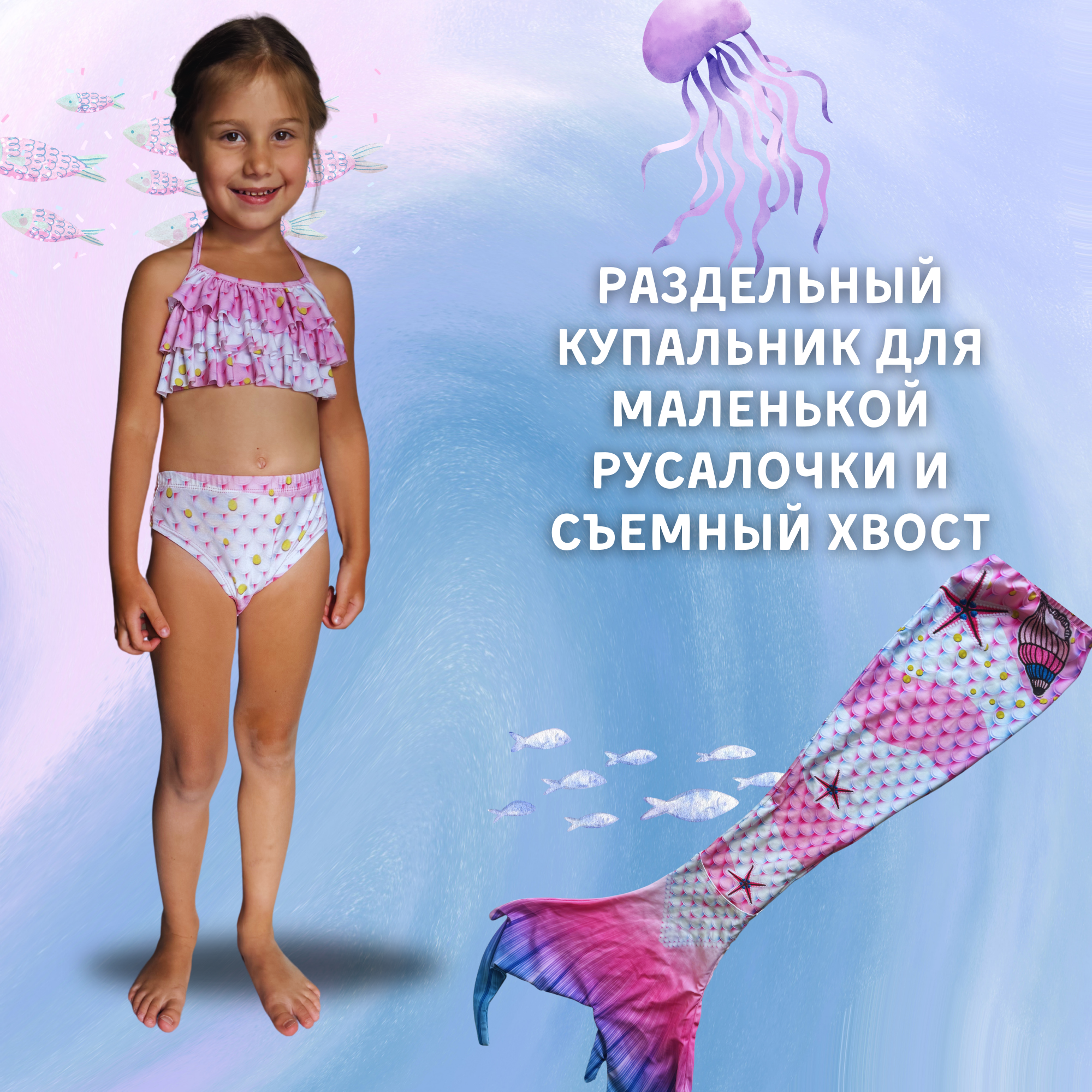 Купальник детский с хвостом русалки, 110 размер интересное: