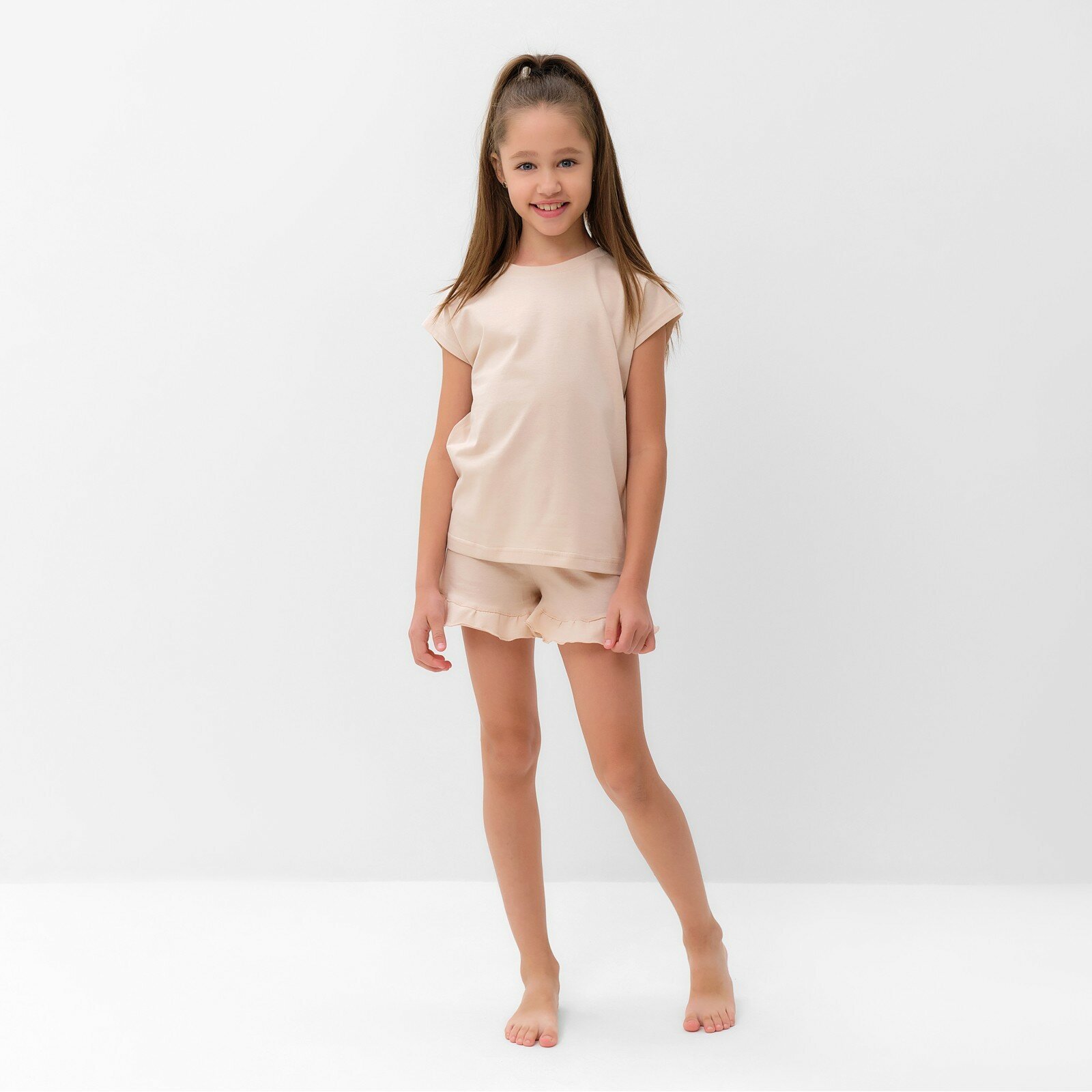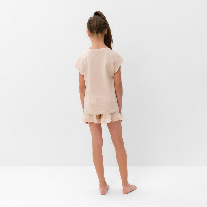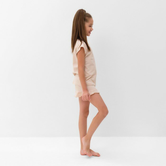 Пижама для девочки (футболка и шорты) MINAKU, цвет бежевый, рост 116 см