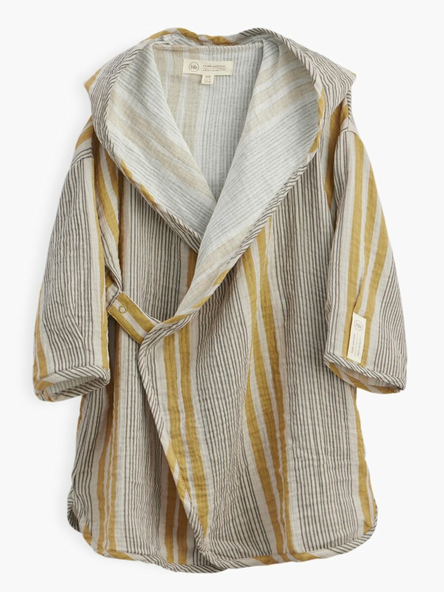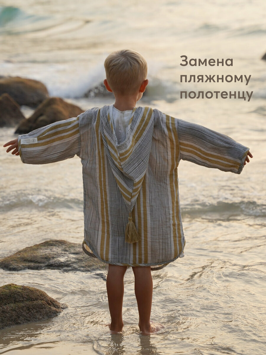 88129, Халат детский хлопок Happy Baby, муслиновый халат для девочки и мальчика, туника пляжная детская, серый в клетку, рост 122-128 интересное: