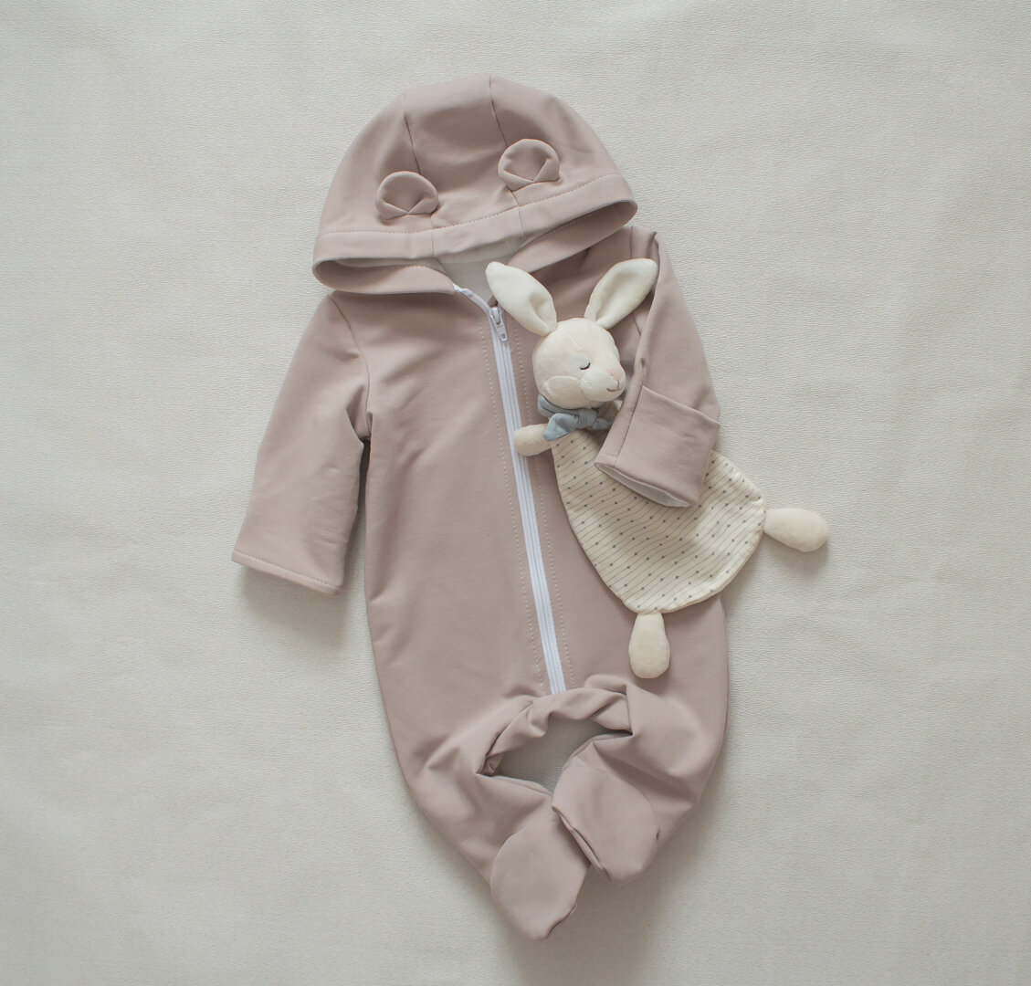 Детский комбинезон из футера, 68 размер (от 3 до 6 мес.), MAMINY ZAPISKY, бежевый, закрытые ножки