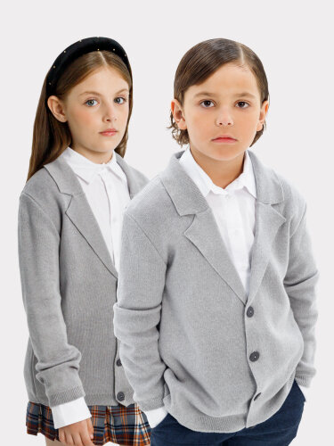 Пиджак Amarobaby Pure Love School, вязаный, серый, размер 122-128