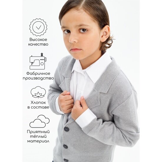 СохранитьПиджак Amarobaby Pure Love School, вязаный, серый, размер 140-146 интересное: