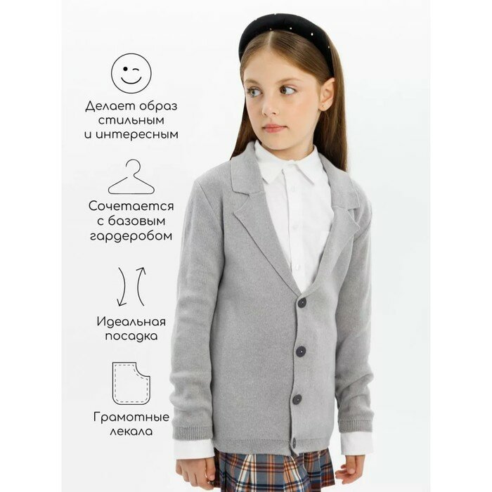 Пиджак Amarobaby Pure Love School, вязаный, серый, размер 134-140