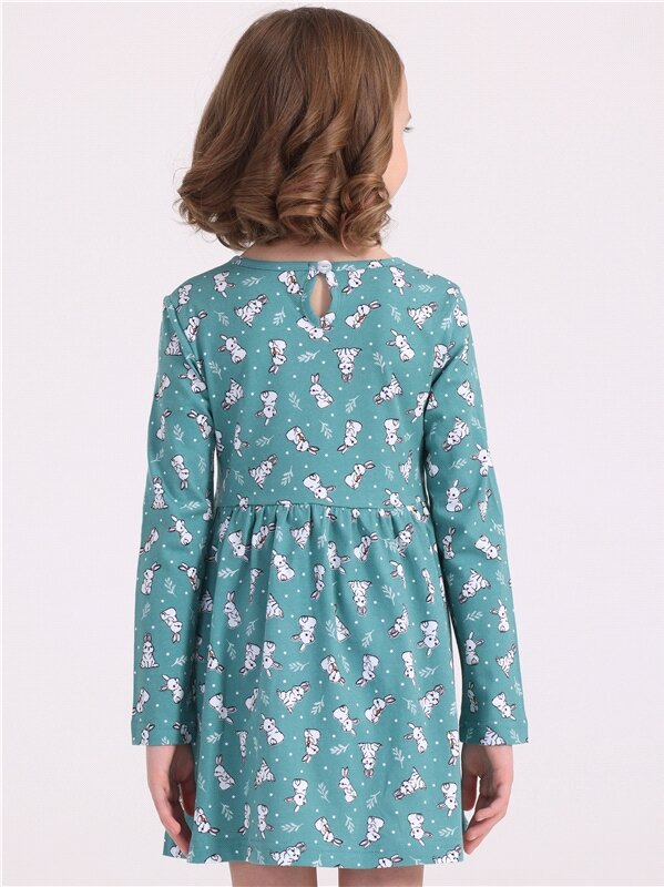 Платье для девочки в садик с длинным рукавом хлопок 100% Апрель 1ДПД4398001н/243/*/4931/*/*/*/* бирюзовый,белый,голубой 52-98