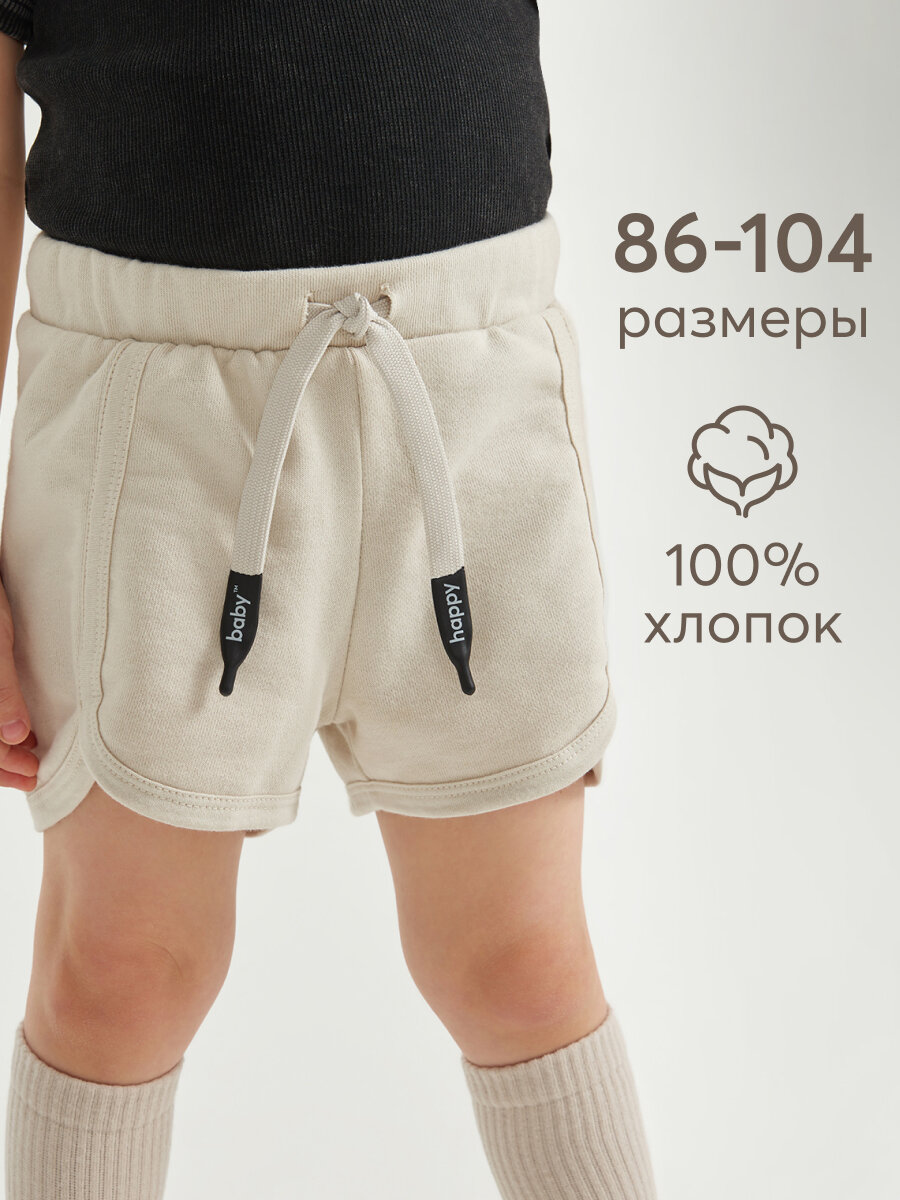 Сохранить88224, Шорты детские хлопковые Happy Baby, на резинке со шнурком, для девочки и для мальчика, шорты летние, бежевые, размер 86-92 интересное: