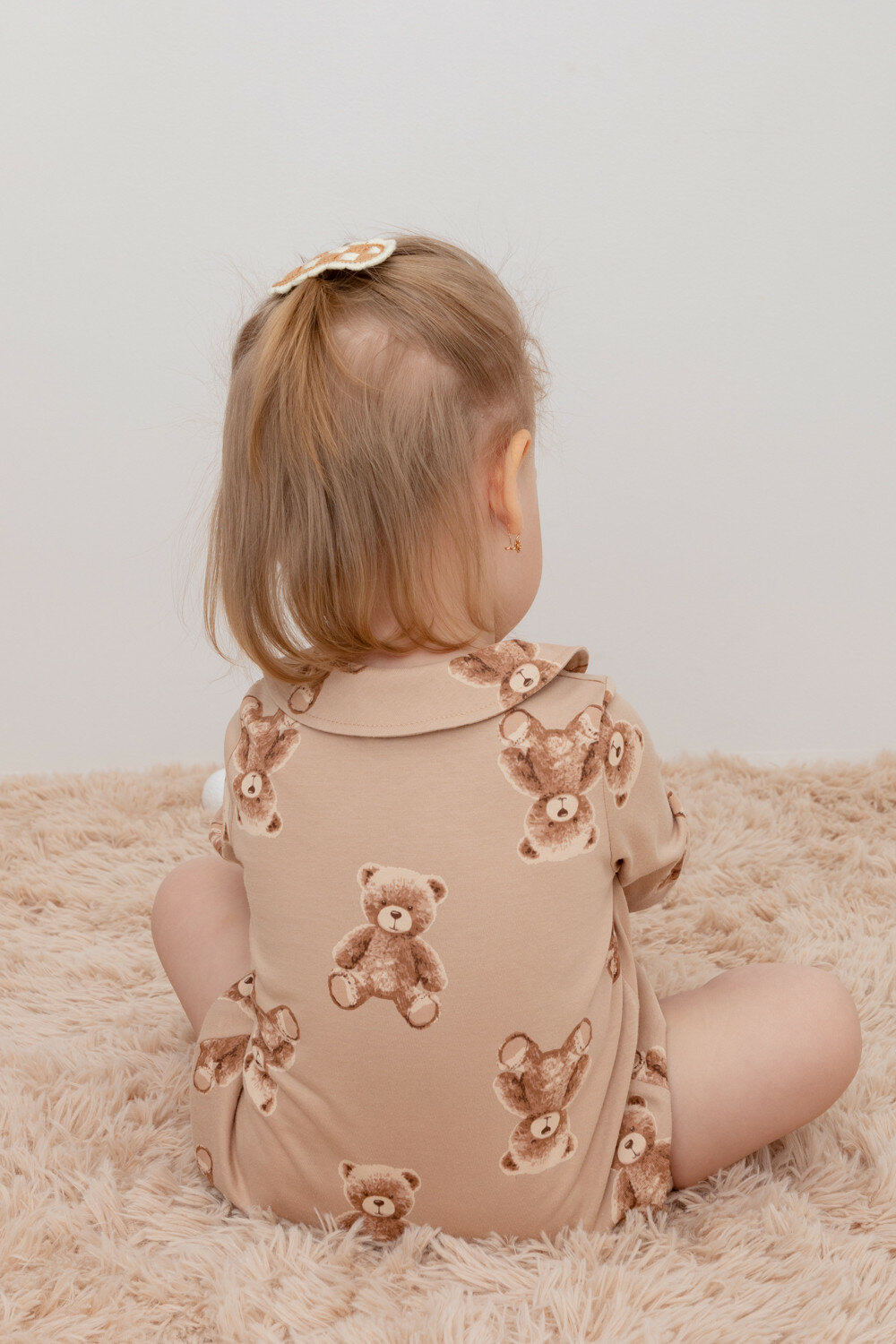 Боди для девочки с длинным рукавом из натурального хлопка, Crockid КР 6481/нежный бежевый,милые мишки к413 р 52/86