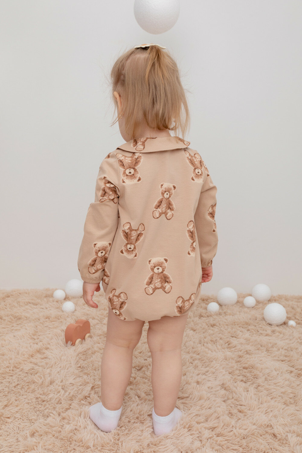 Боди для девочки с длинным рукавом из натурального хлопка, Crockid КР 6481/нежный бежевый,милые мишки к413 р 52/80