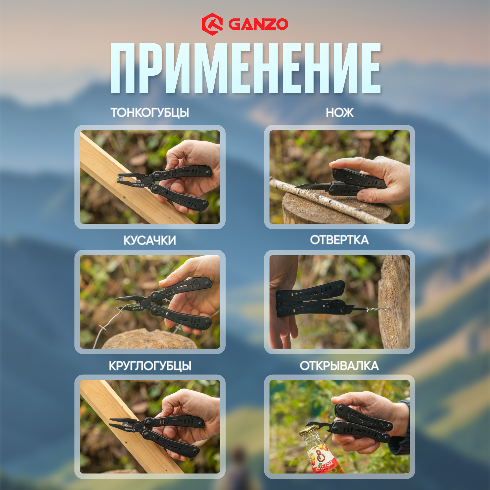 Мультитул пассатижи GANZO G103 черный