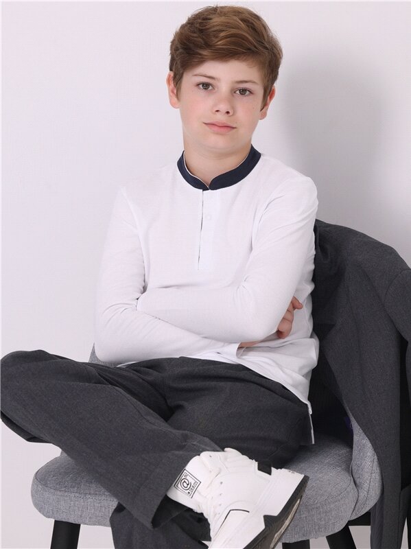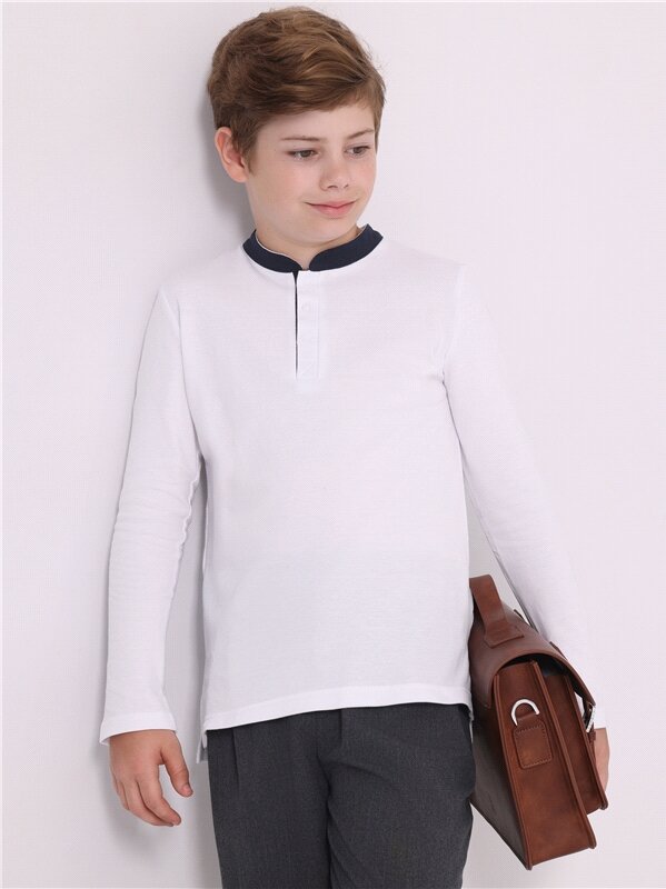 Лонгслив белый для мальчика школьный футболка-поло рубашка Апрель 1ПДПД4490090/982/31/*/*/*/*/* белый 84-164