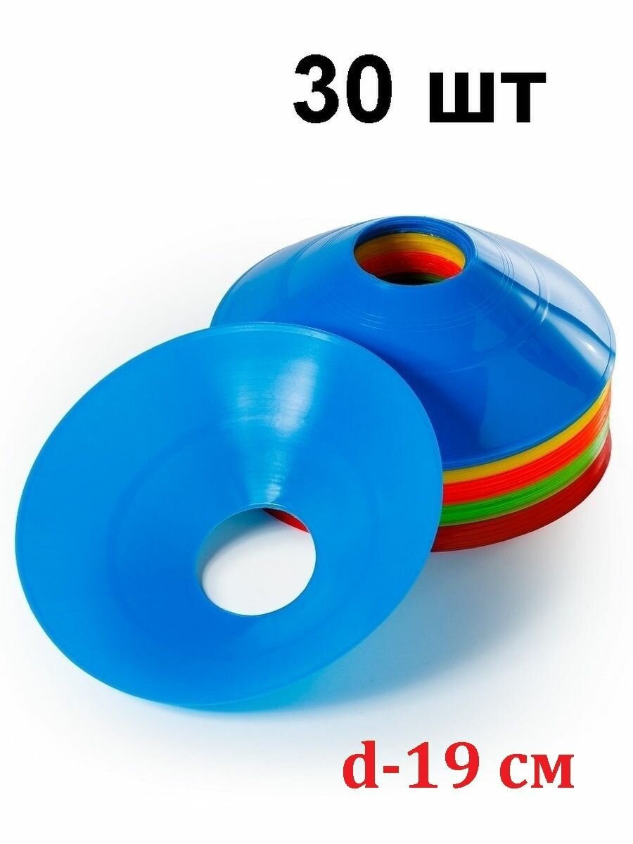 Конусы фишки спортивные Estafit 30 штук высота 5 см, диаметр 19 см, фишки для футбола интересное: