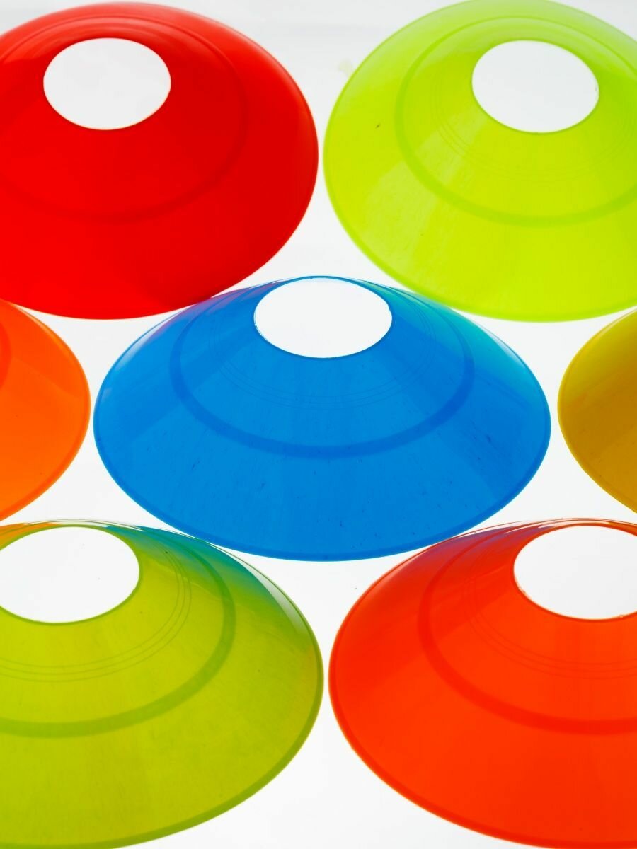Конусы фишки спортивные Estafit 20 штук высота 5 см, диаметр 19 см, фишки для футбола интересное: