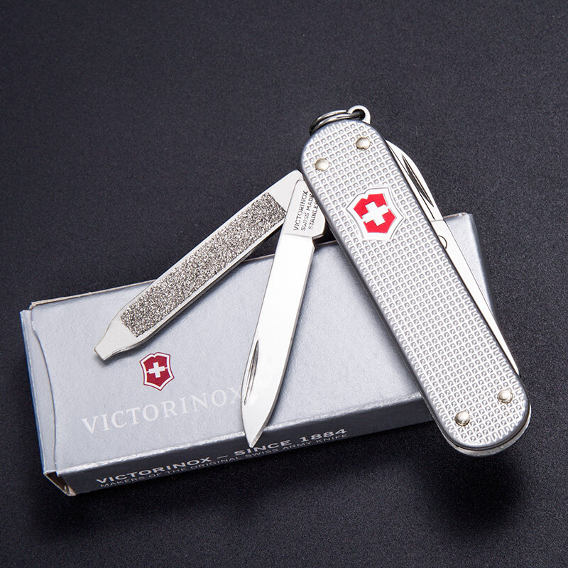Нож-брелок VICTORINOX Classic Alox, 58 мм, 5 функций, алюминиевая рукоять, серебристый, 0.6221.26