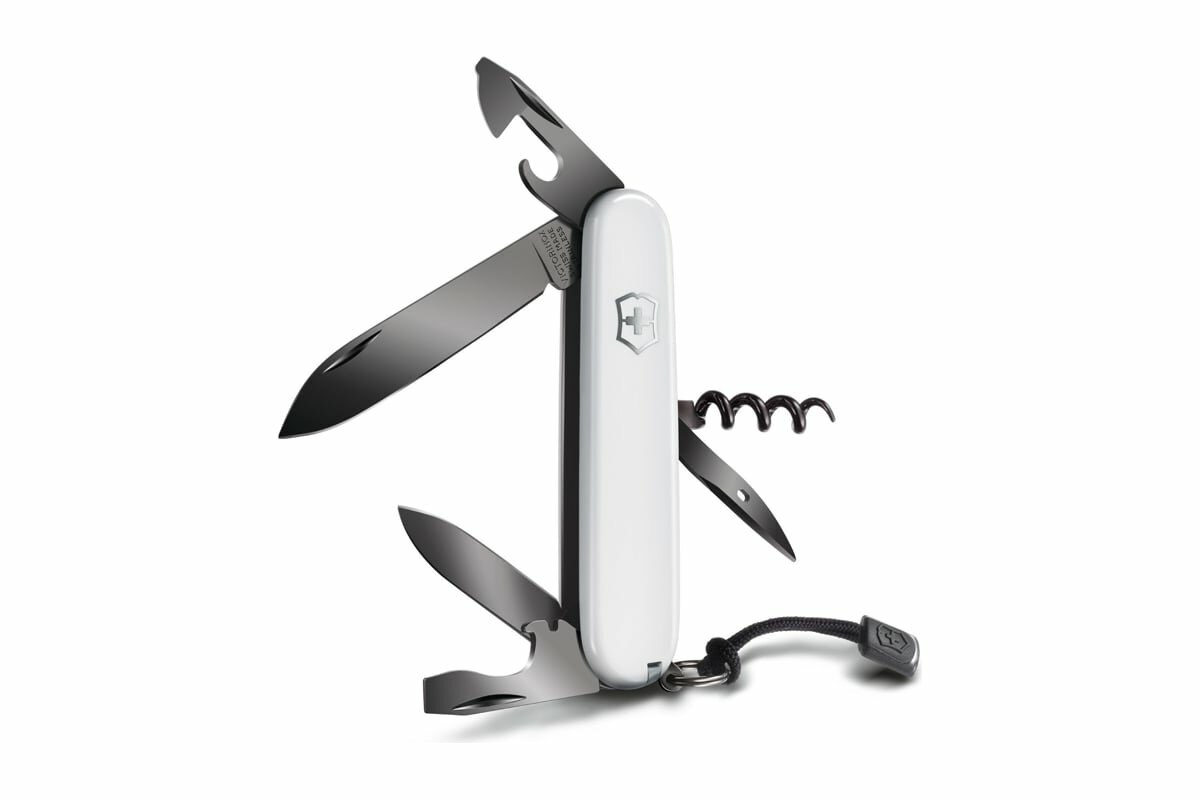 Нож складной VICTORINOX Spartan PS, чернёная сталь, 91 мм, 12 функций, цвет белый, со шнурком 1.3603.7P