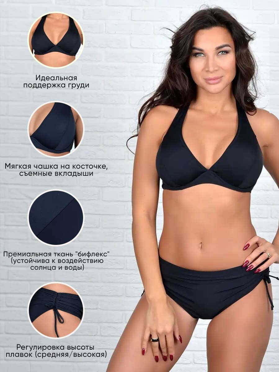 Купальник женский раздельный больших размеров черный MollenaLayers, с высокой посадкой, размер 58