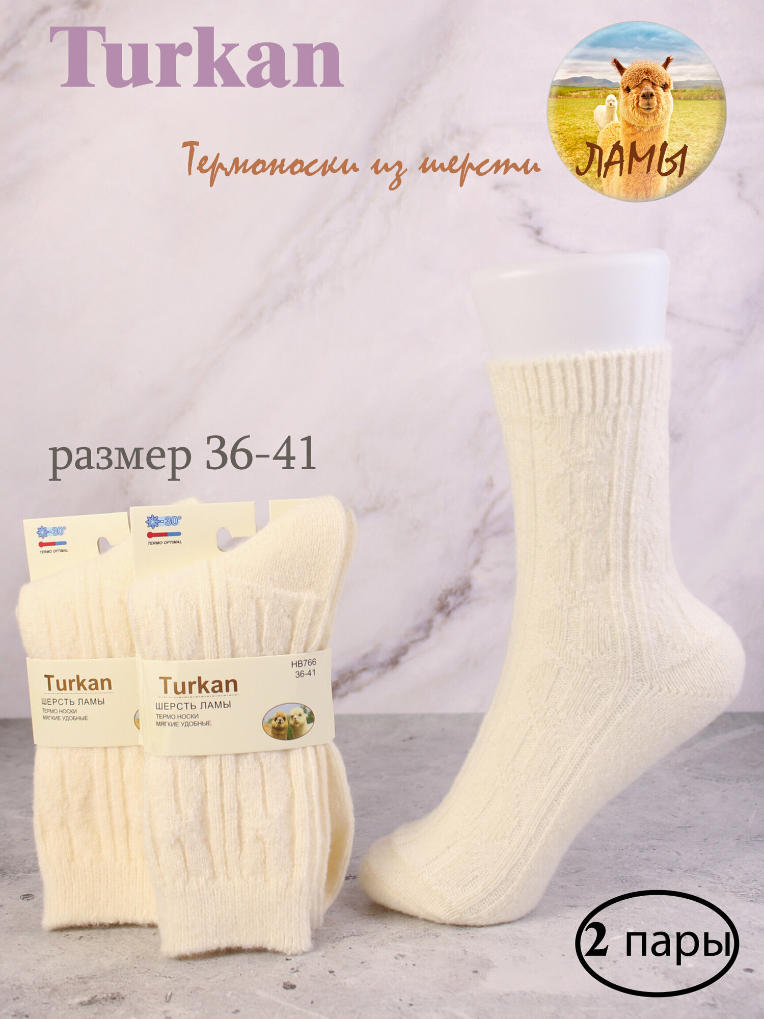 Носки из шерсти ламы, 2 пары (белые) интересное:
