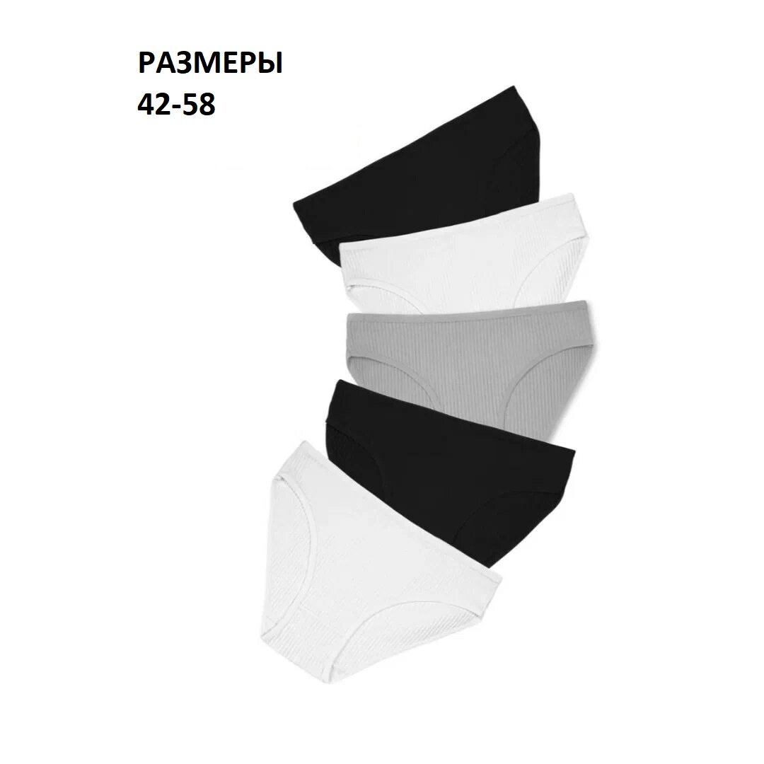 Купить Комплект хлопковых трусов слипы 5 шт в рубчик 48 размер чёрный / белый / серый