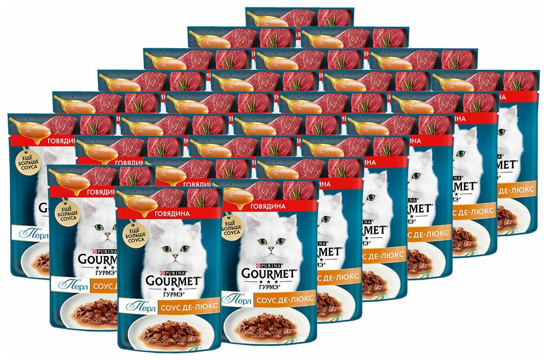 Купить Влажный корм для кошек Gourmet Перл Соус Де-люкс, с говядиной 24 шт. х 85 г (кусочки в соусе)