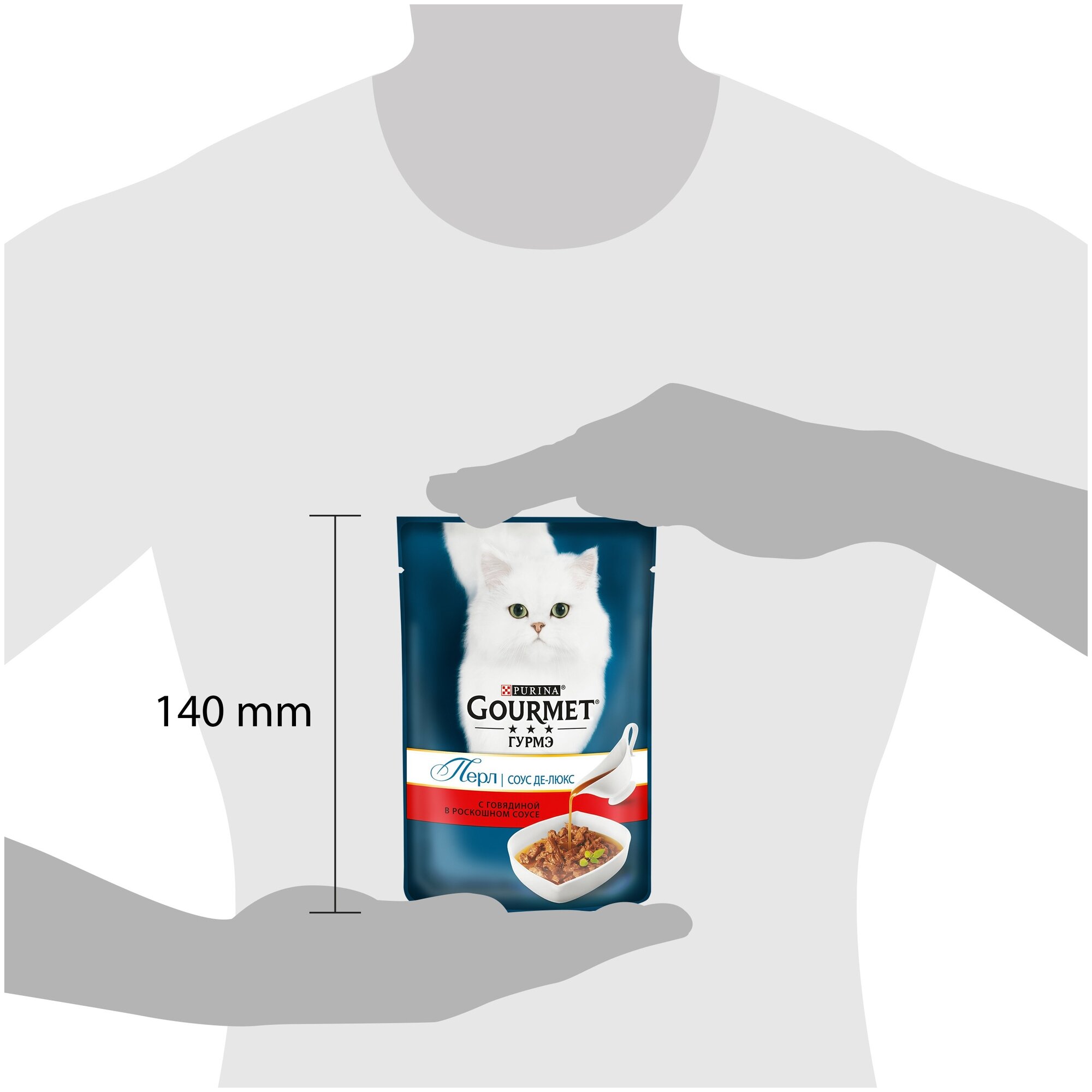 Влажный корм Гурмэ Перл Соус Де-люкс для кошек, с говядиной в роскошном соусе, Пауч, 75 г х 26 шт