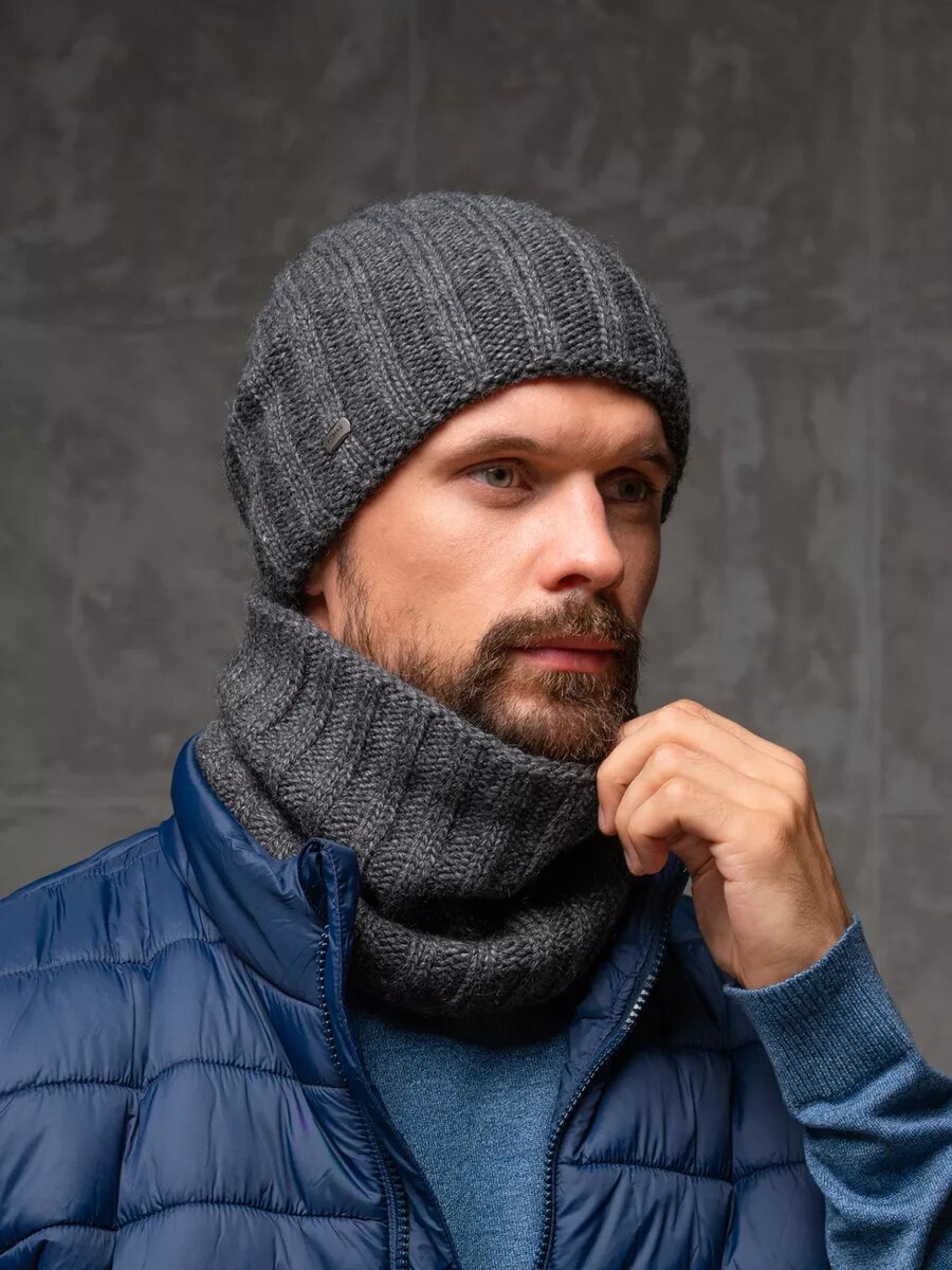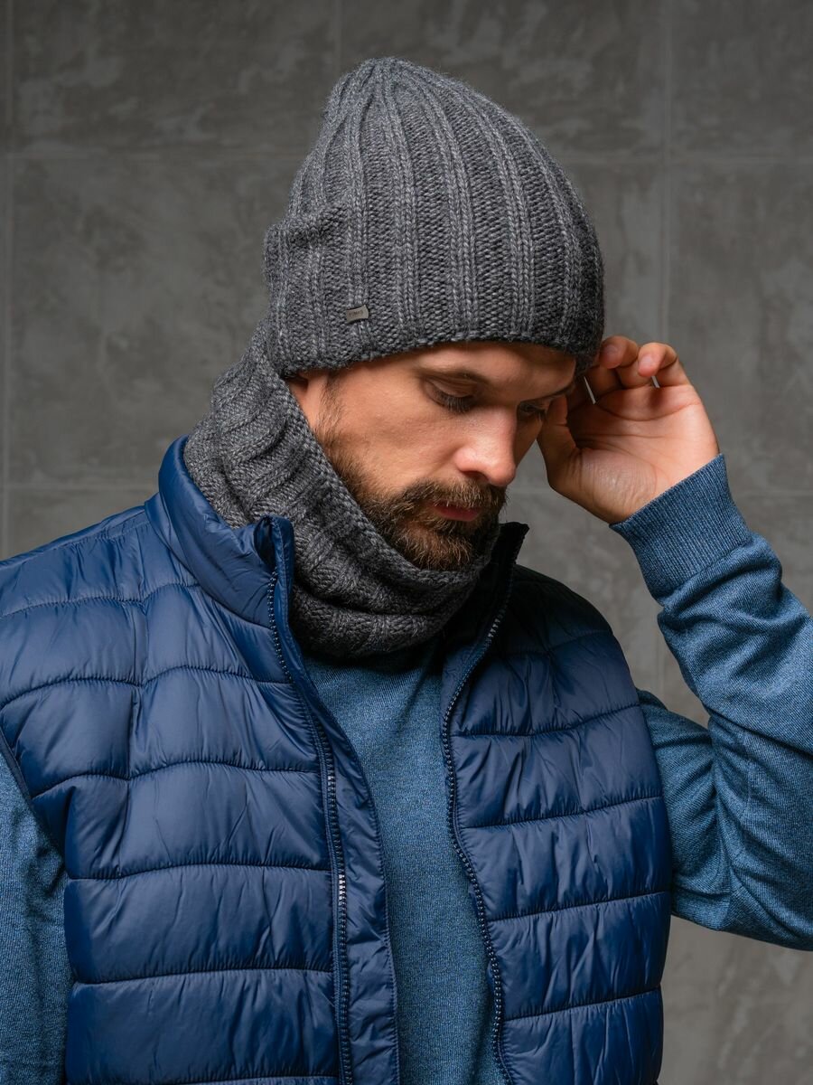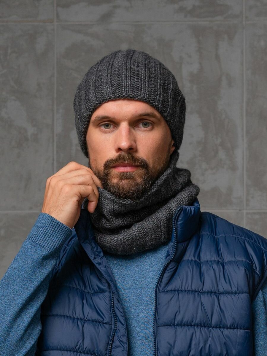 Мужской комплект FOMAS (шапка, снуд), цвет антрацитовый, размер 56-58 интересное: