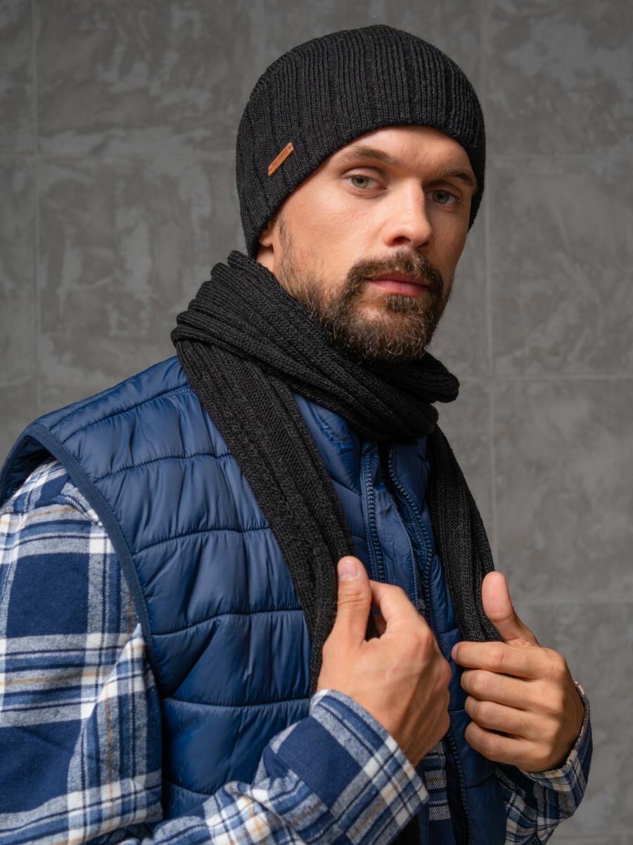 Купить Мужской комплект FOMAS (шапка, шарф), цвет черный, размер 56-58