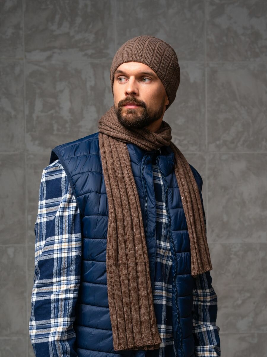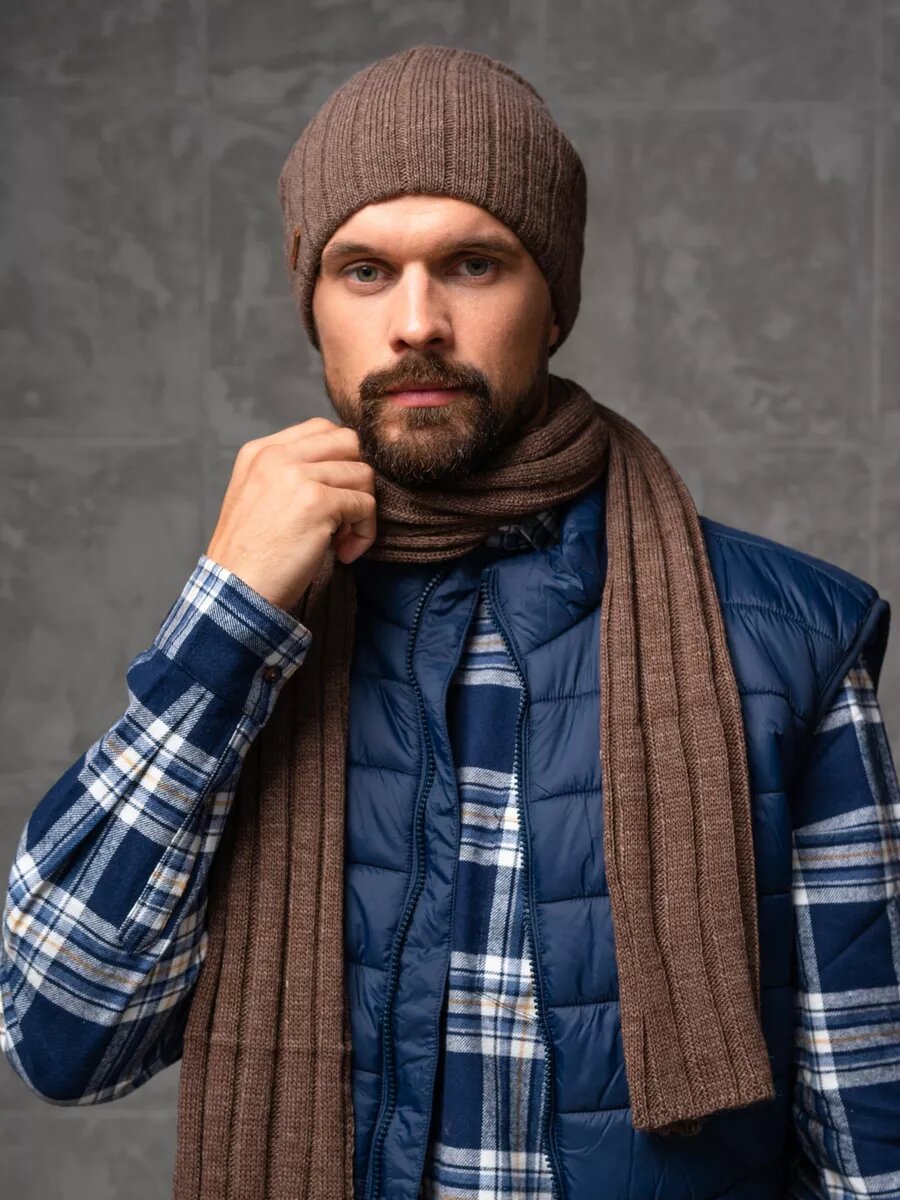 Купить Мужской комплект FOMAS (шапка, шарф), цвет коричневый, размер 56-58