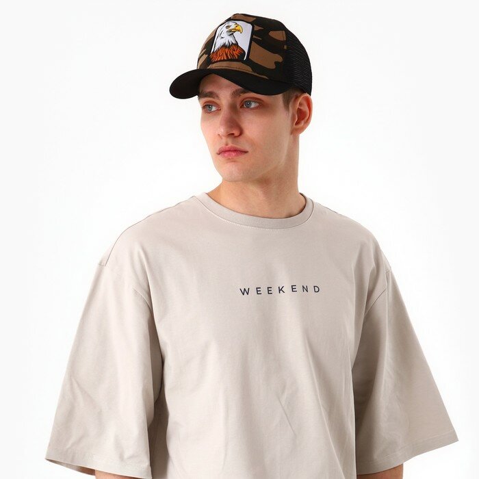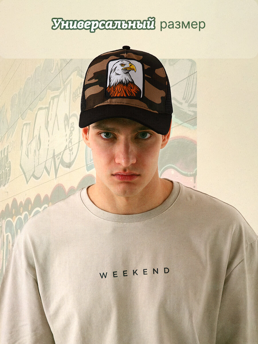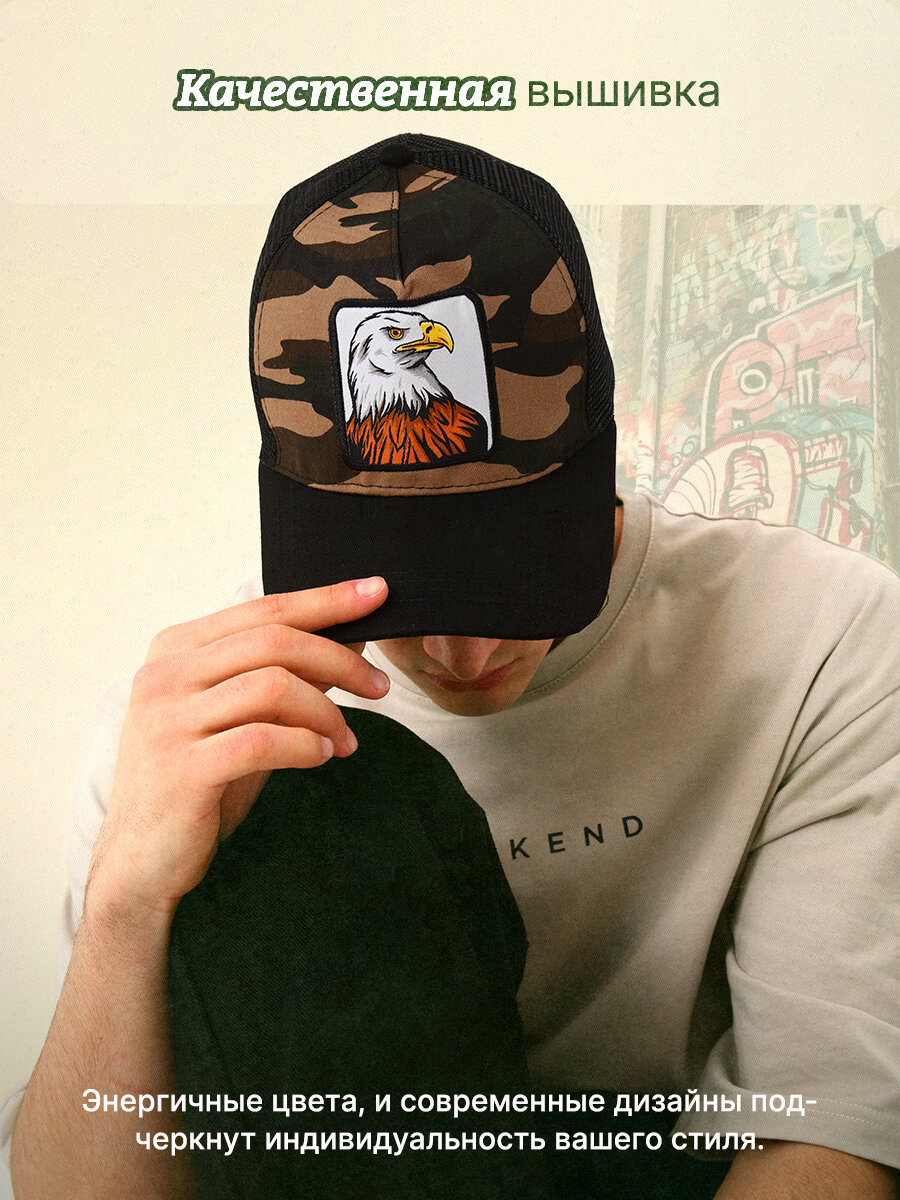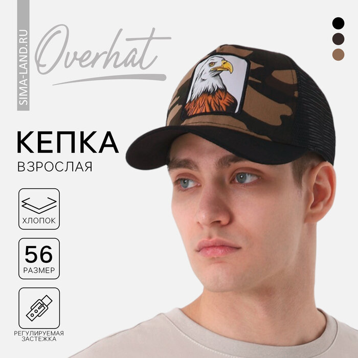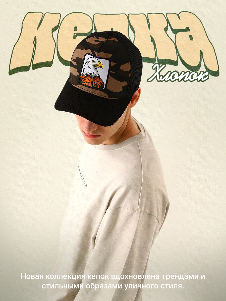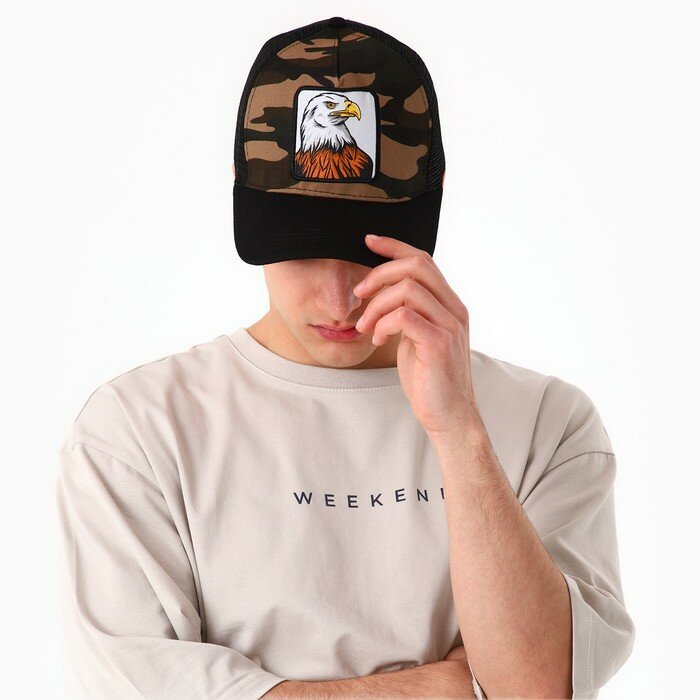 Кепка мужская с сеткой «Орел», цвет чёрный, р-р 56 интересное: