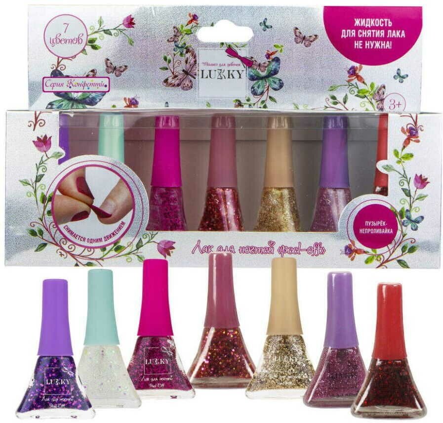 Купить Набор лаков Lukky Конфетти, для ногтей, peel-off, 7 цветов