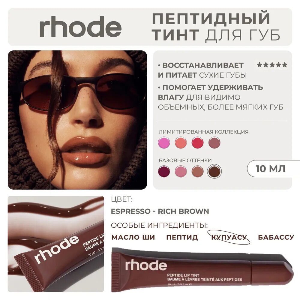 "RHODE" - пептидный тинт для губ, 10мл , Espresso Rich Brown, влажный финиш