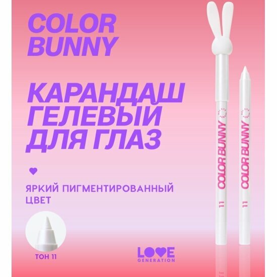 Карандаш для глаз Love Generation Color Bunny гелевый, стойкий, насыщенный, тон 11, серебристый, 1,3 г интересное:
