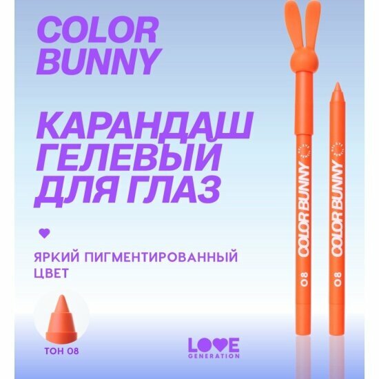 Карандаш для глаз Love Generation Color Bunny гелевый, стойкий, насыщенный, тон 08, оранжевый, 1,3 г интересное: