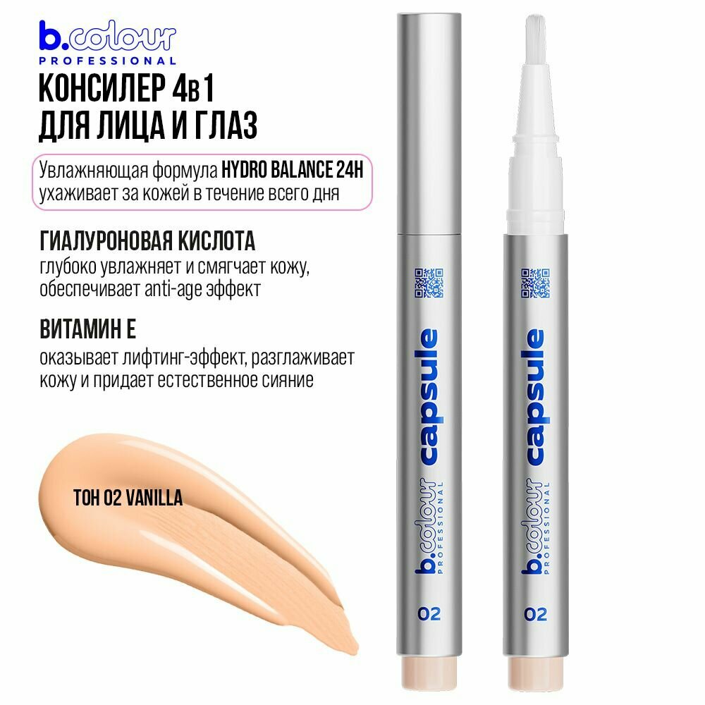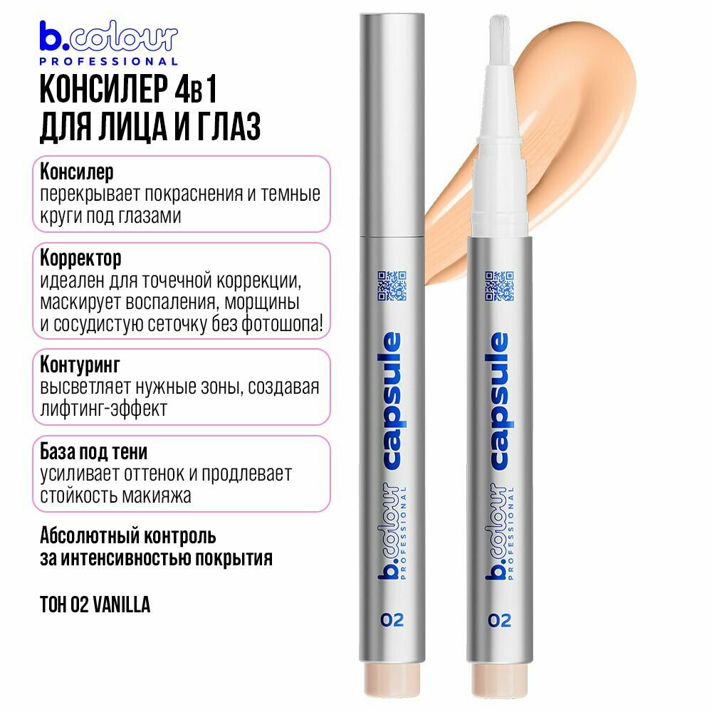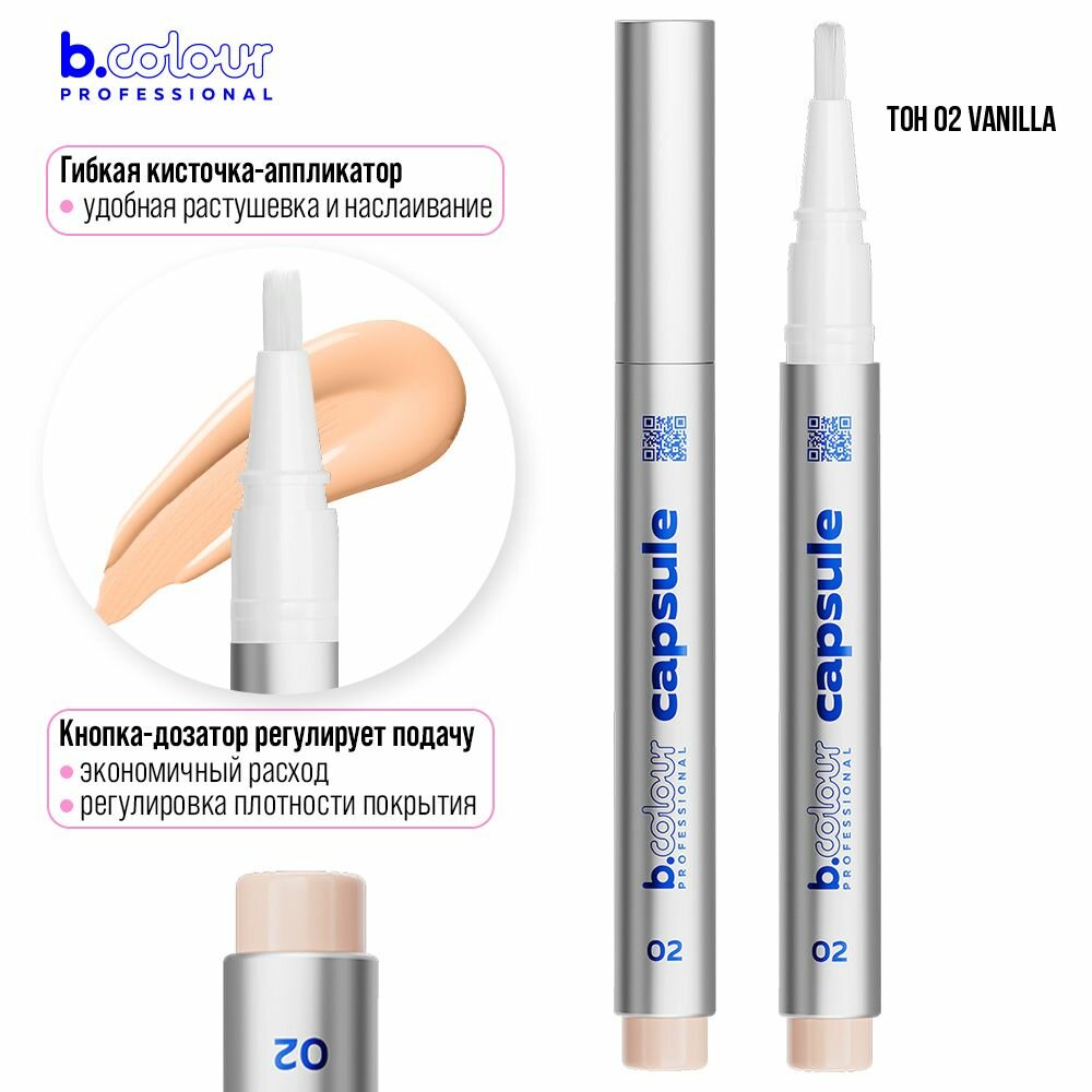 B.COLOUR PROFESSIONAL Консилер для лица, корректор от темных кругов, увлажняющий, светлый CAPSULE 02 VANILLA