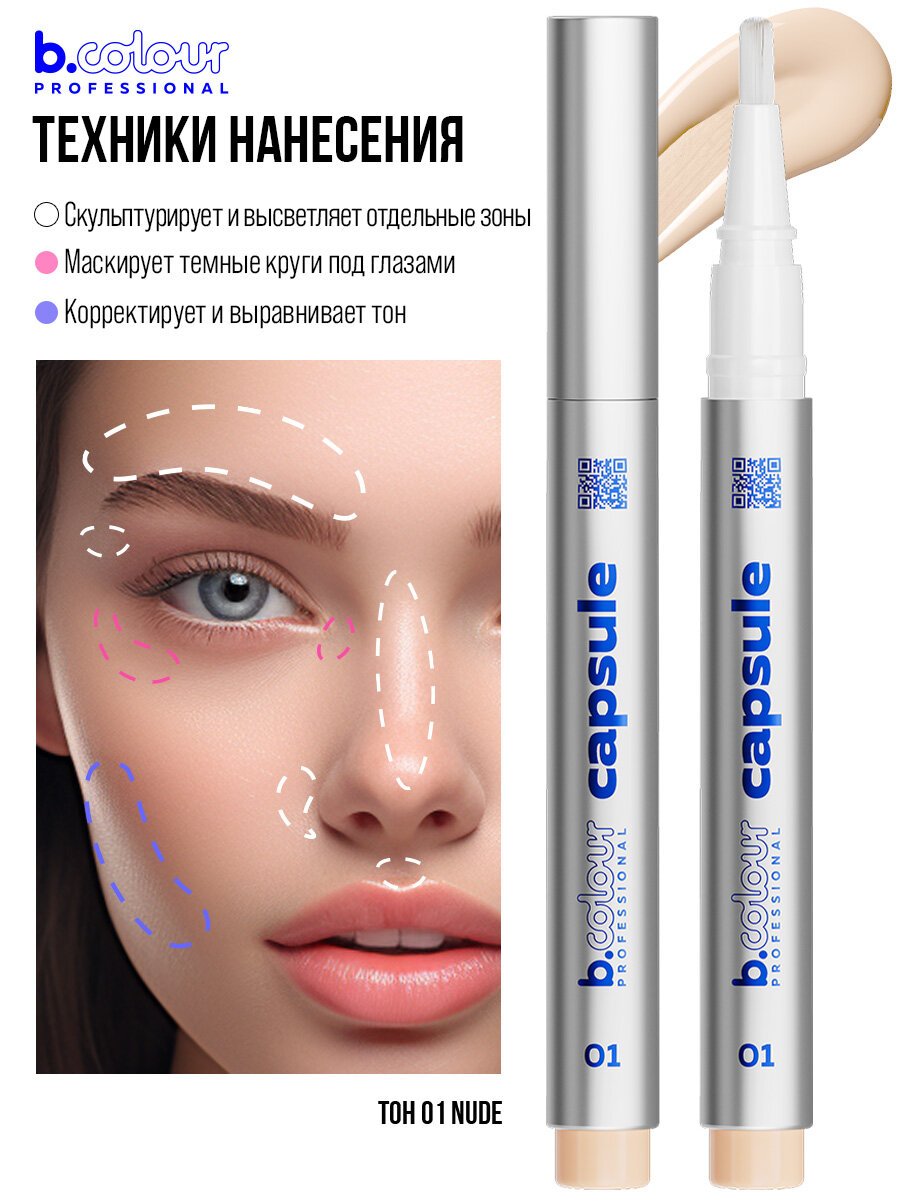 B.COLOUR PROFESSIONAL Консилер для лица, корректор от темных кругов, увлажняющий, светлый CAPSULE 01 NUDE