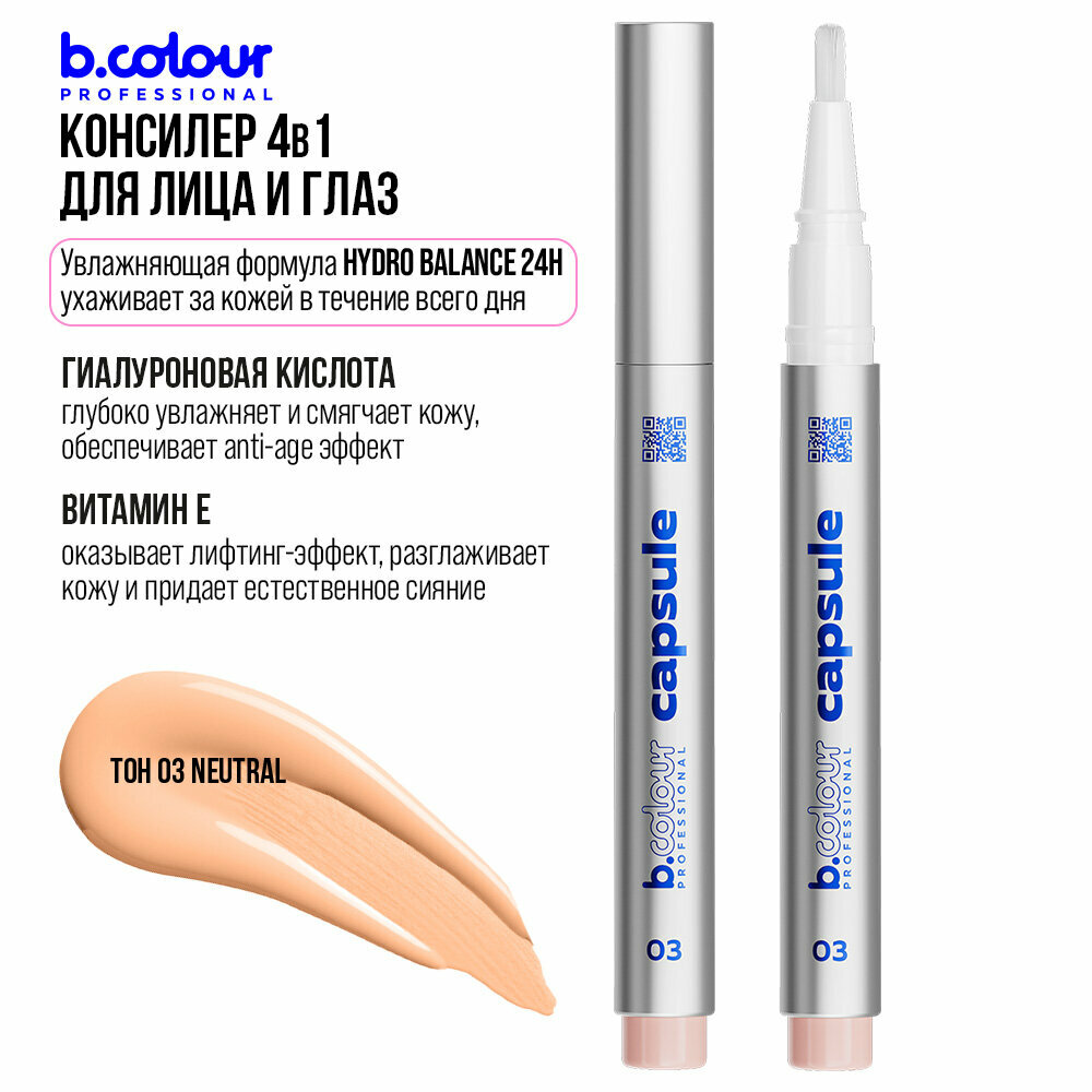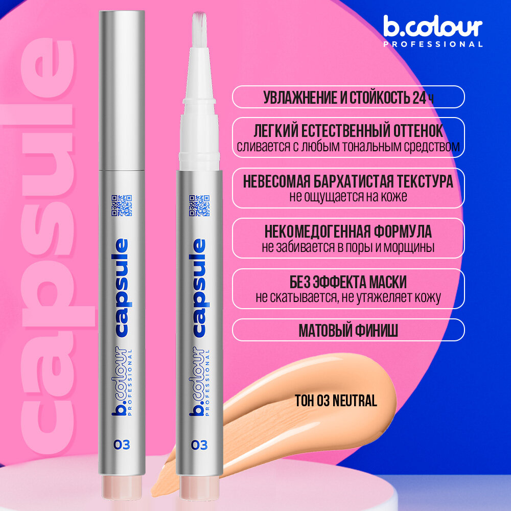 B.COLOUR PROFESSIONAL Консилер для лица, корректор от темных кругов, увлажняющий CAPSULE 03 NEUTRAL