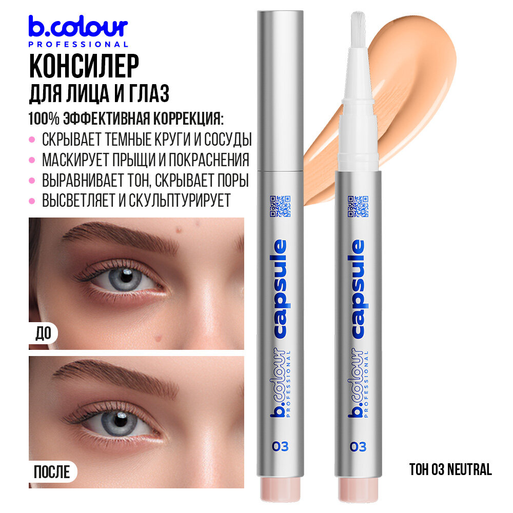Купить Консилер для лица и глаз плотный, кремовый, увлажняющий, корректор B.COLOUR PRO CAPSULE тон 03 Neutral