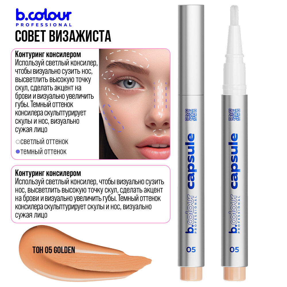B.COLOUR PROFESSIONAL Консилер для лица, корректор от темных кругов, увлажняющий, плотный CAPSULE 05 GOLDEN