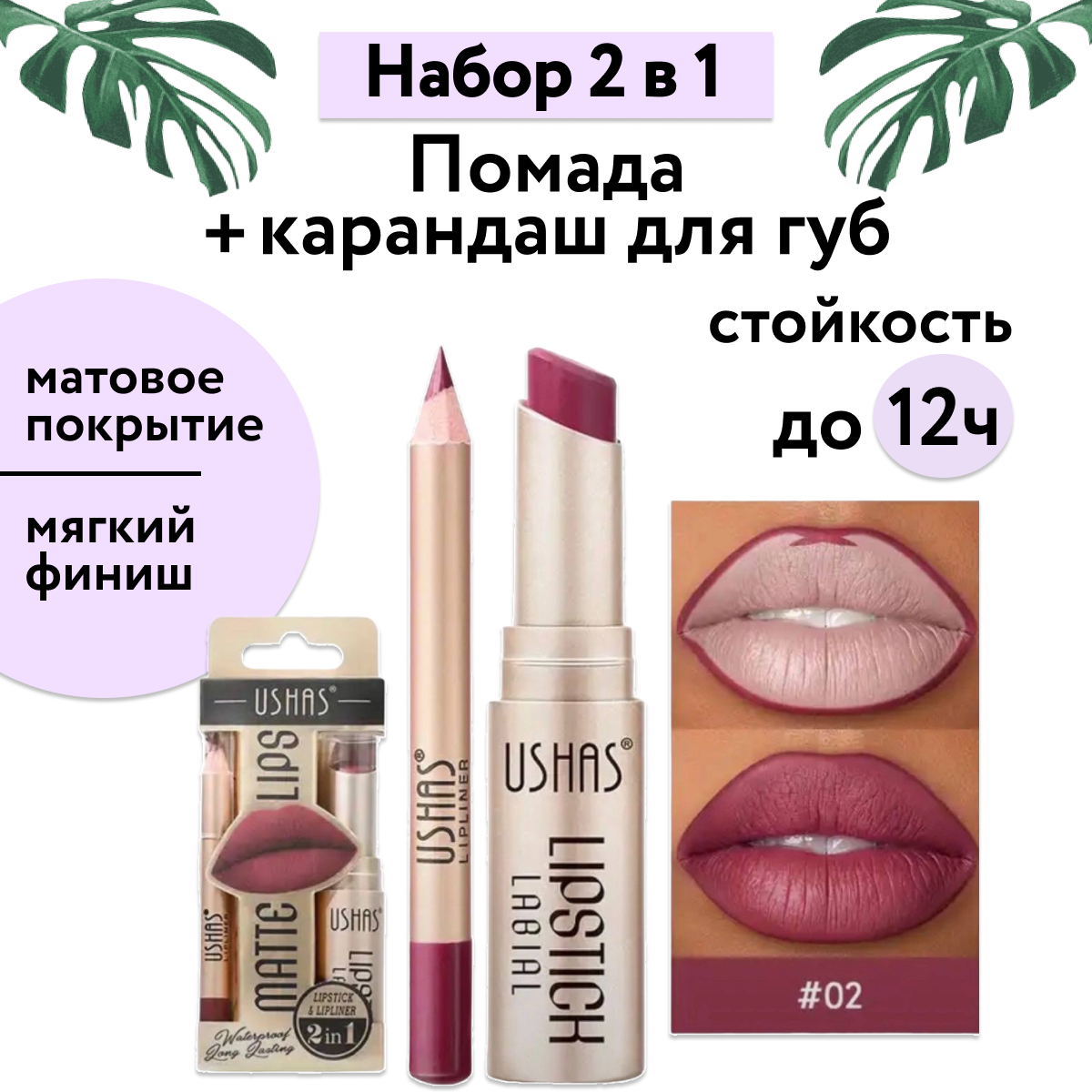 Матовая помада и устойчивый карандаш USHAS