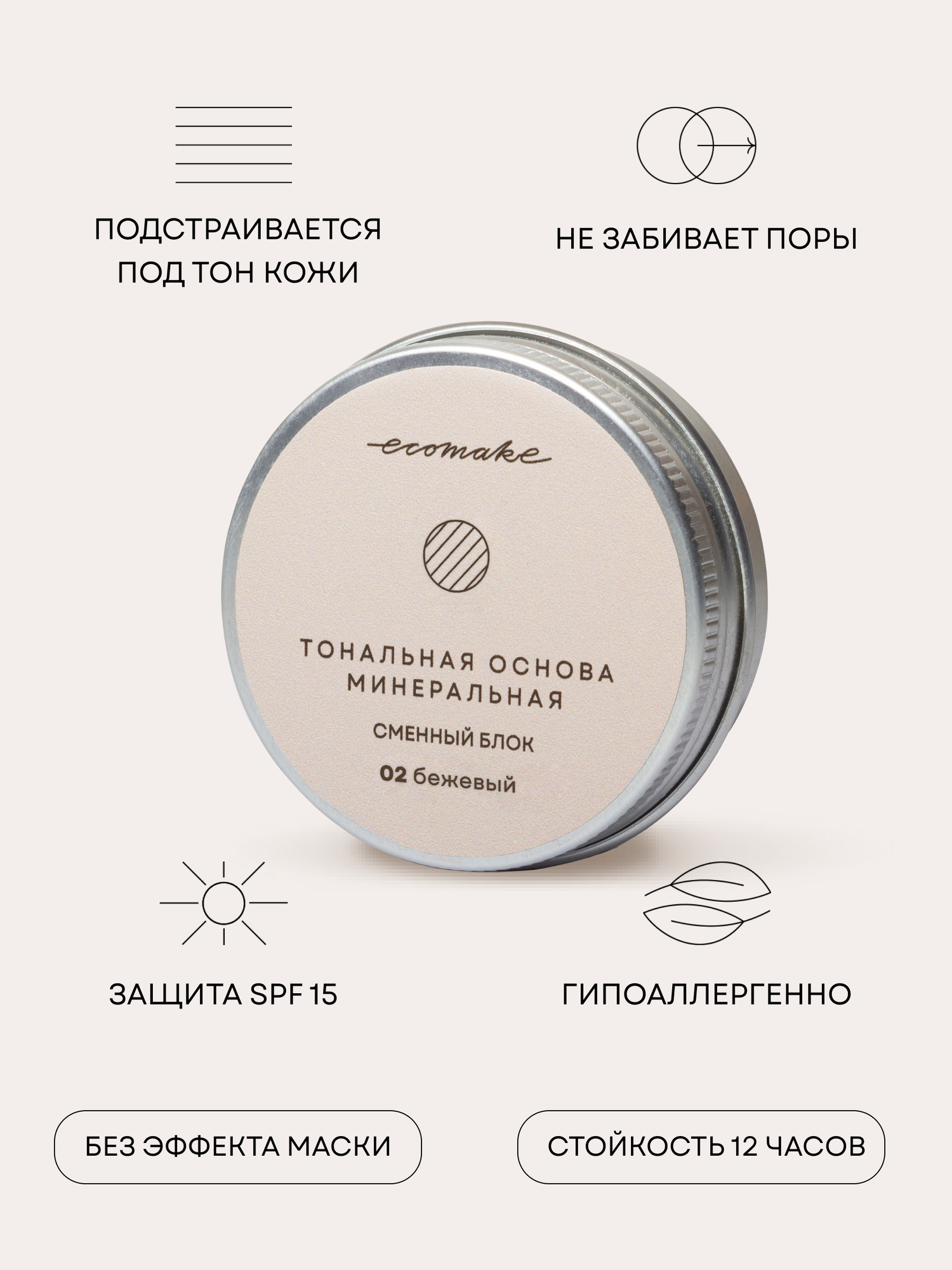 Купить Пудра для лица минеральная матирующая рассыпчатая Ecomake, сменный блок тон 02 бежевый