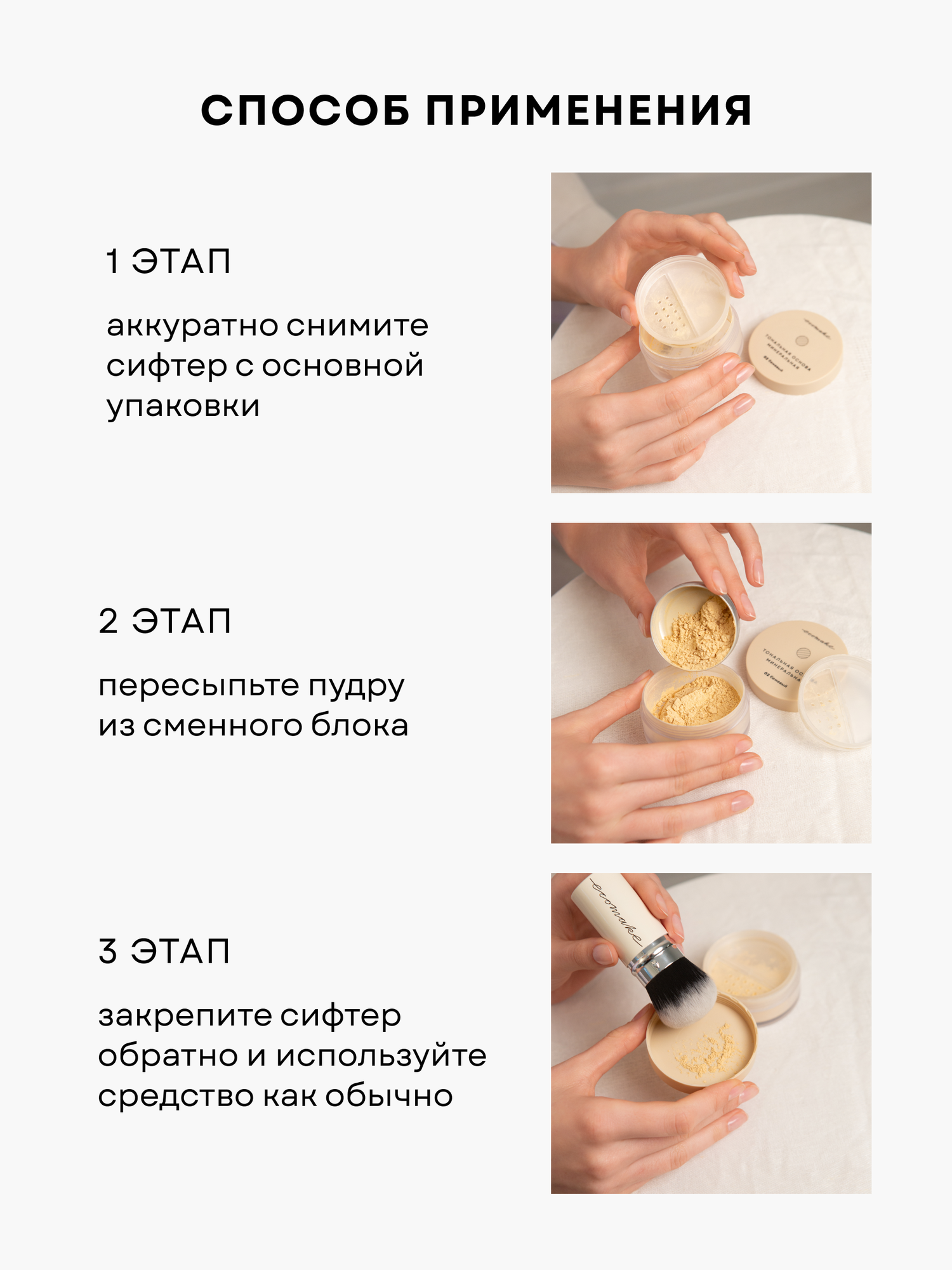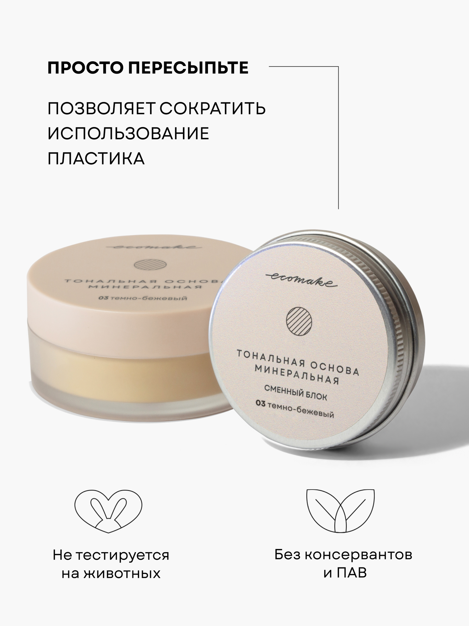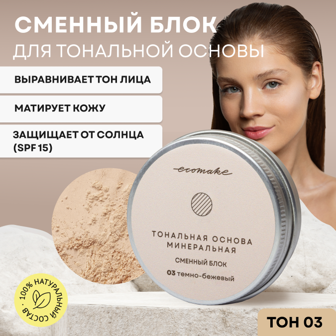 Пудра для лица минеральная матирующая рассыпчатая Ecomake, сменный блок 03 темно-бежевый интересное: