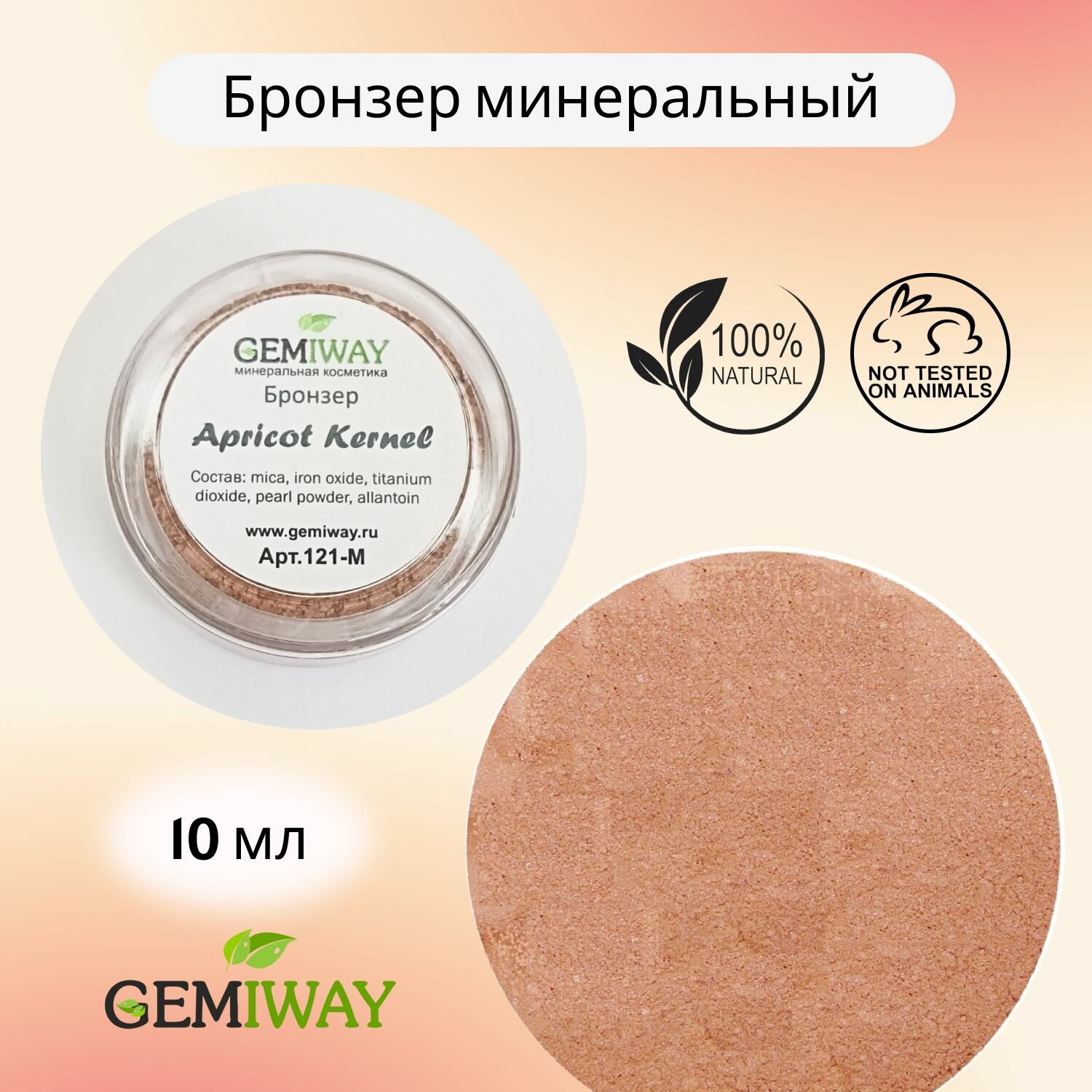 СохранитьБронзер минеральный "Apricot Kernel" GEMIWAY 10 мл / 2 г . Рассыпчатый, натуральный бронзер для лица интересное: