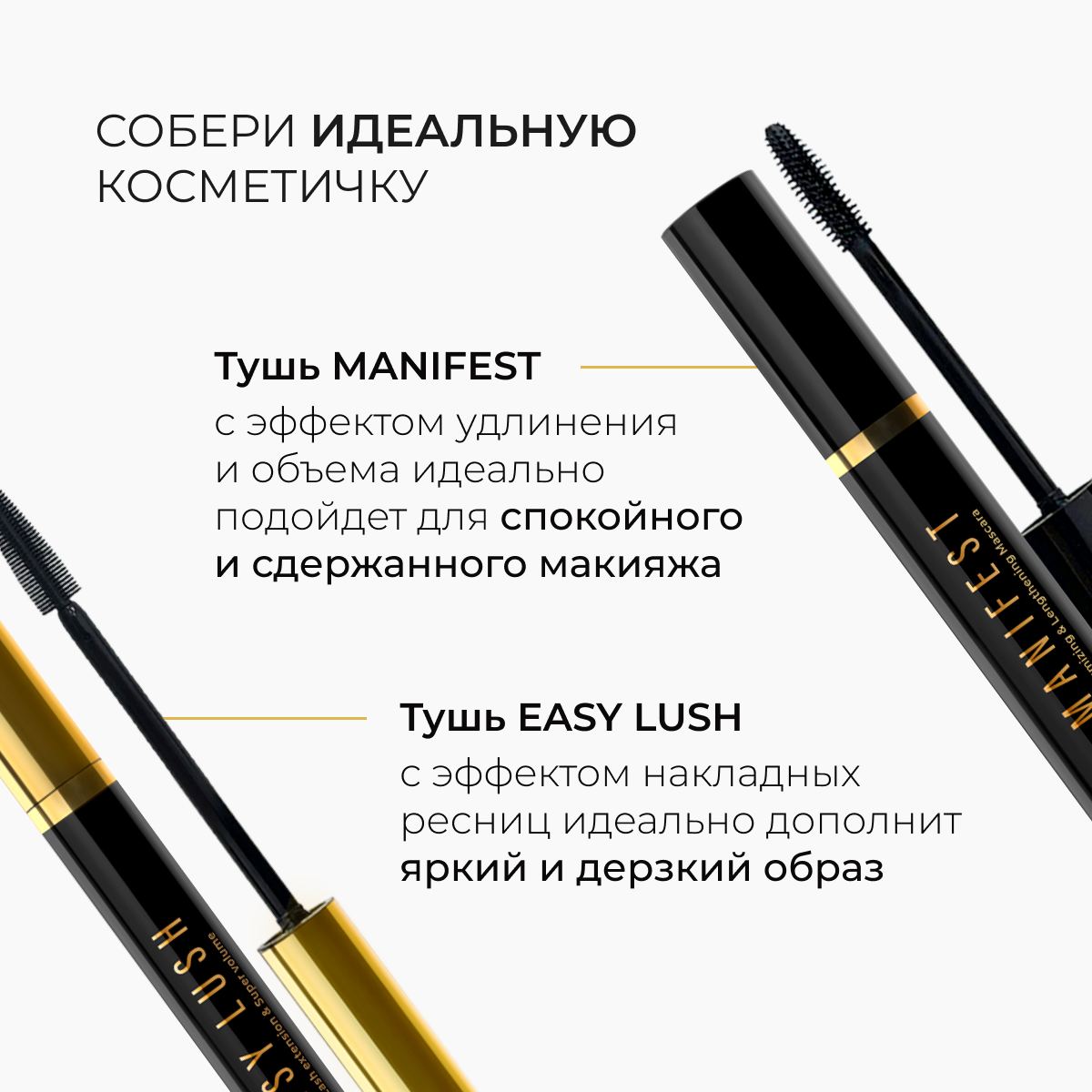 | Подробная комплектация | Тушь для ресниц MANIFEST 11 г, Тушь EASY LUSH 7,8 г |