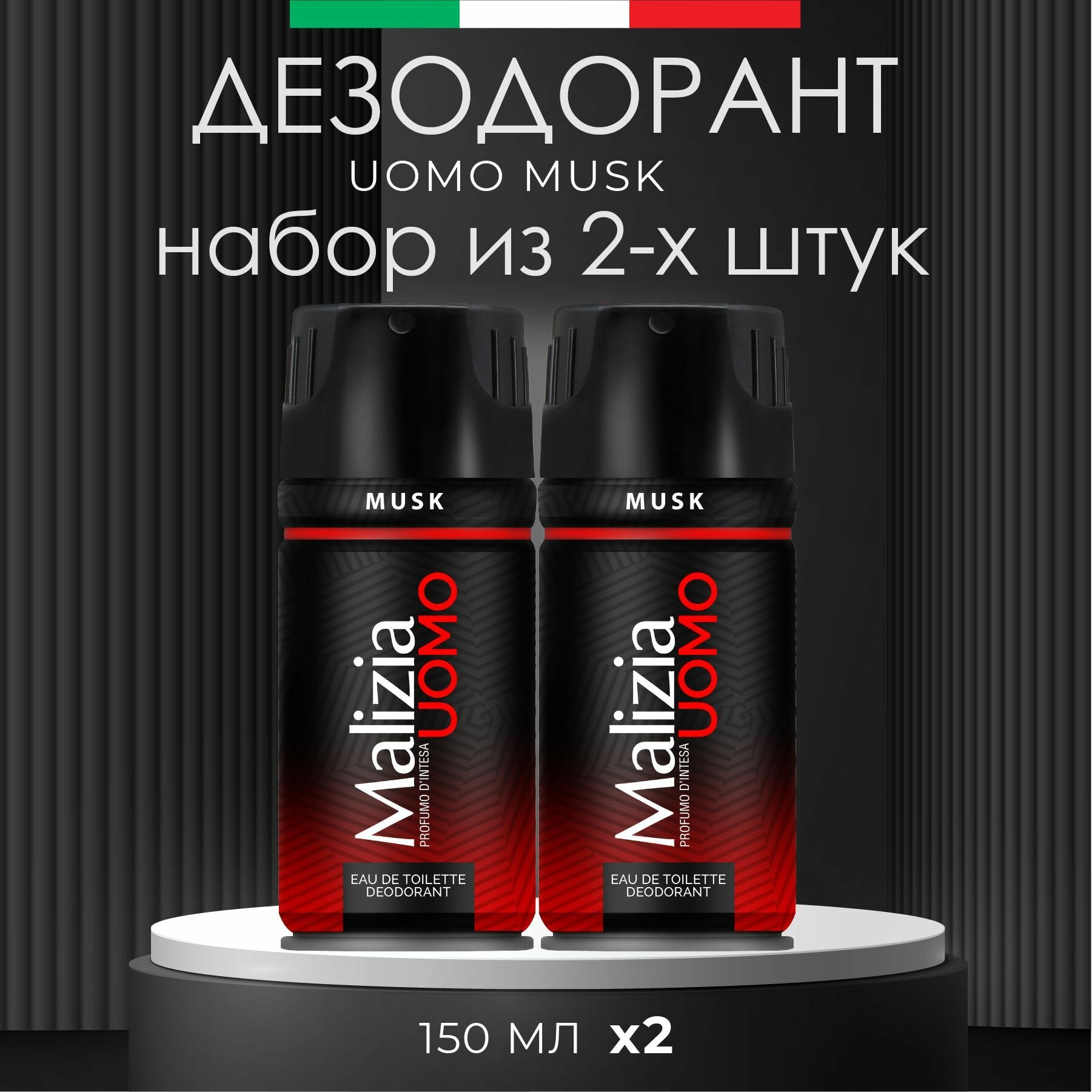 Итальянский дезодорант мужской MALIZIA aэрозоль "MUSK", 150 мл, 2 шт