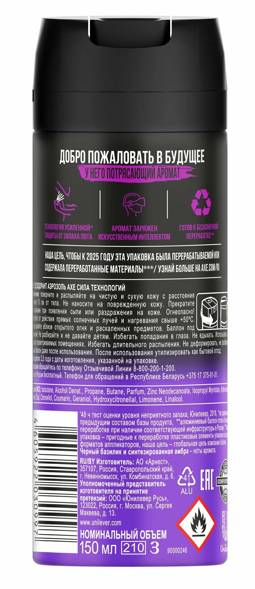 AXE Дезодорант аэрозоль Сила Технологий с защитой от запаха пота до 48 часов муж., 150 мл интересное: