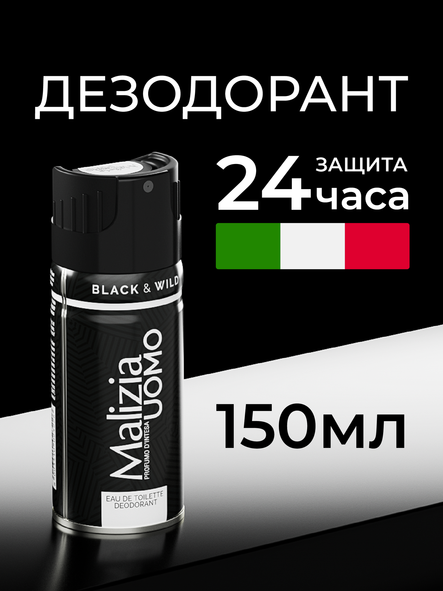 Купить Malizia Дезодорант мужской аэрозоль Black&Wild 150 мл
