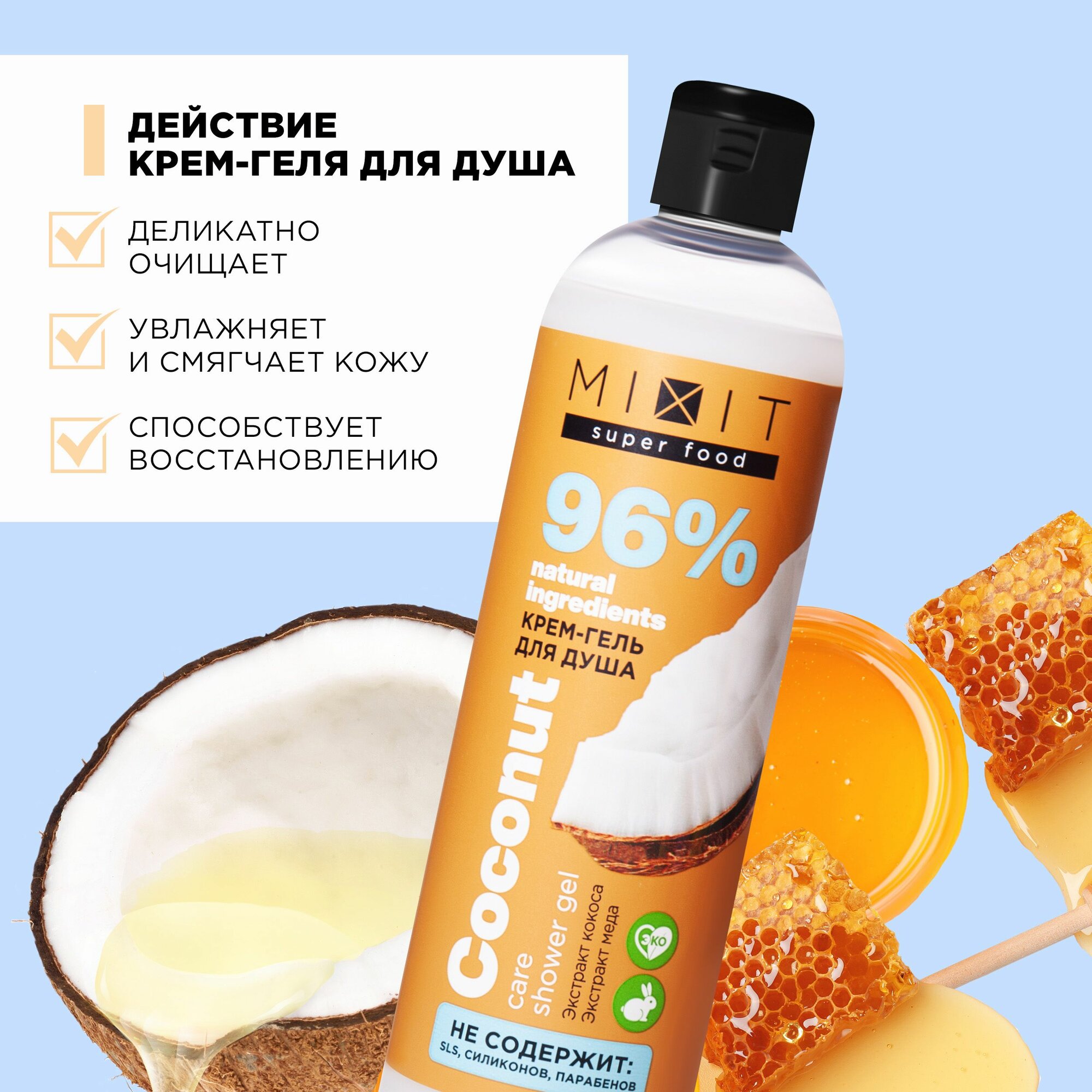 Набор косметики MIXIT для лица и тела: маска для лица от отеков, гель для душа, скраб, баттер для тела интересное: