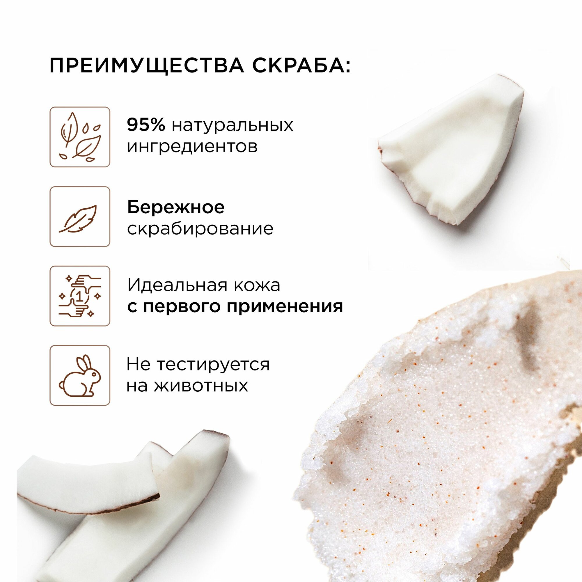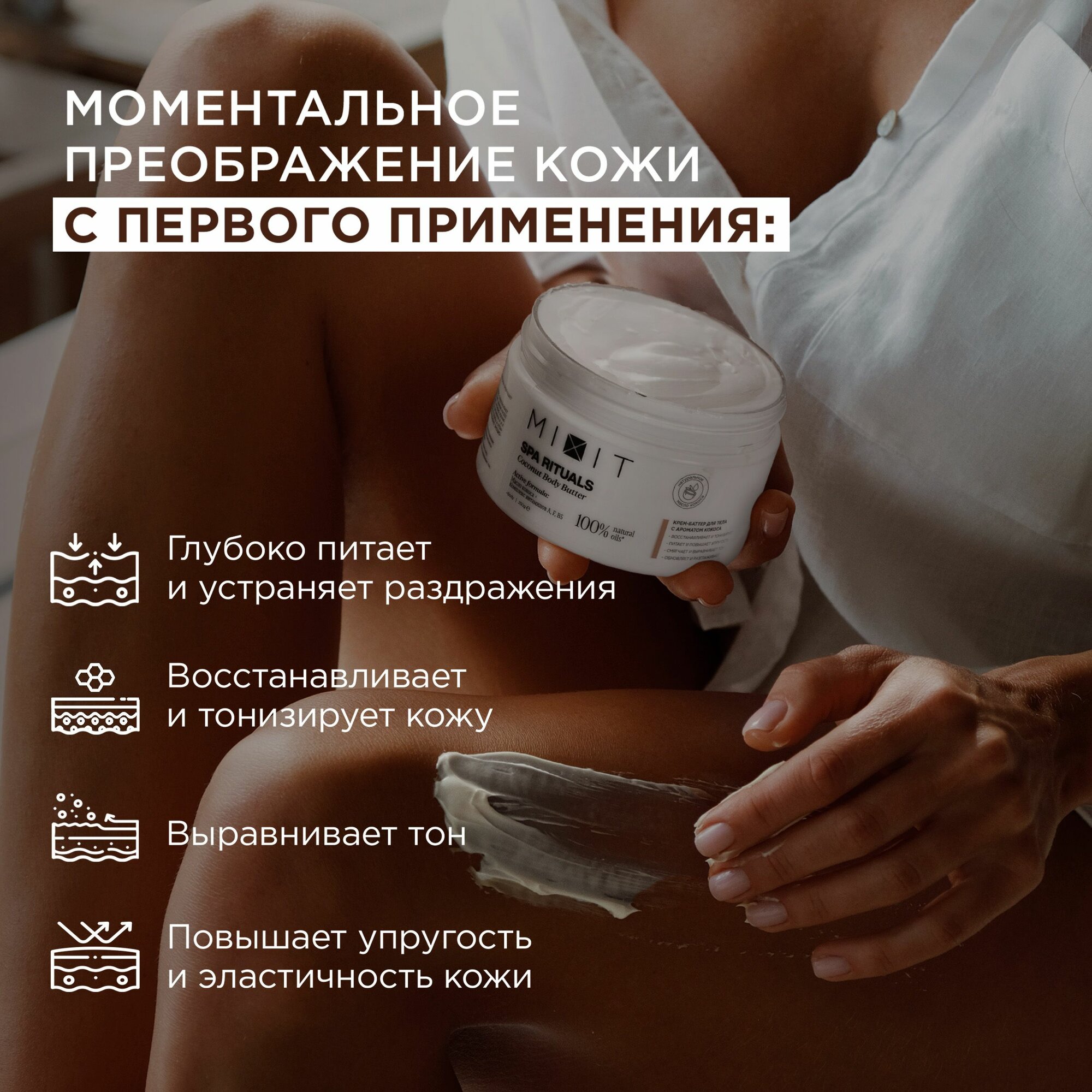 | Состав | 1. Вода / глицерин / масло кукурузное / полиакрилоилдиметилтаурат аммония / масло макадамии / бетаин / масло кокосовое / сквалан / изопропилпальмитат / пропиленгликоль / экстракт кокоса / гиалуронат натрия / феноксиэтанол / аллантоин / сорбат калия / бензоат натрия / парфюмерная композиция / этилгексилглицерин / BHT / ментол / динатрий ЭДТА. 2. Вода / лауретсульфат натрия / Хлорид Натрия / глицерин / кокамидопропилбетаин / кокамид ДЭА / парфюмерная композиция / экстракт кокоса / экстракт меда / пропиленгликоль / стирен/акрилат сополимер / коко глюкозид / Метилхлоризотиазолинон / Метилизотиазолинон / нитрат магния / хлорид магния / сорбат калия / бензоат натрия / Лимонная Кислота / динатрий ЭДТА. 3. Хлорид натрия / морская соль / масло кокосовое / кокосовая пудра / глицерил стеарат / масло ши / масло сладкого миндаля / полисорбат 20 / изопропил пальмитат / скорлупа грецкого ореха / бутилгидрокситолуол / отдушка. 4. Вода / глицерин / цетеариловый спирт / масло ши / масло кокосовое / изопропил пальмитат / C12-15 алкилбензоат / диметикон / глицерил стеарат / каприловый/каприновый триглицерид / масло макадамии / феноксиэтанол / ретинил пальмитат / пантенол / линолевая кислота / линоленовая кислота / цетеарет-20 / цетеарет-12 / цетилпальмитат / акрилаты/C10-30 алкилакрилата кроссполимер / бутилгидрокситолуол / динатрий ЭДТА / гидроксид натрия / этилгексилглицерин / отдушка. |