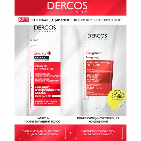 Vichy Набор Dercos Уход за волосами (шампунь против выпадения волос energy+ 200 мл + кондиционер укрепляющий против выпадения волос 200 мл) интересное: