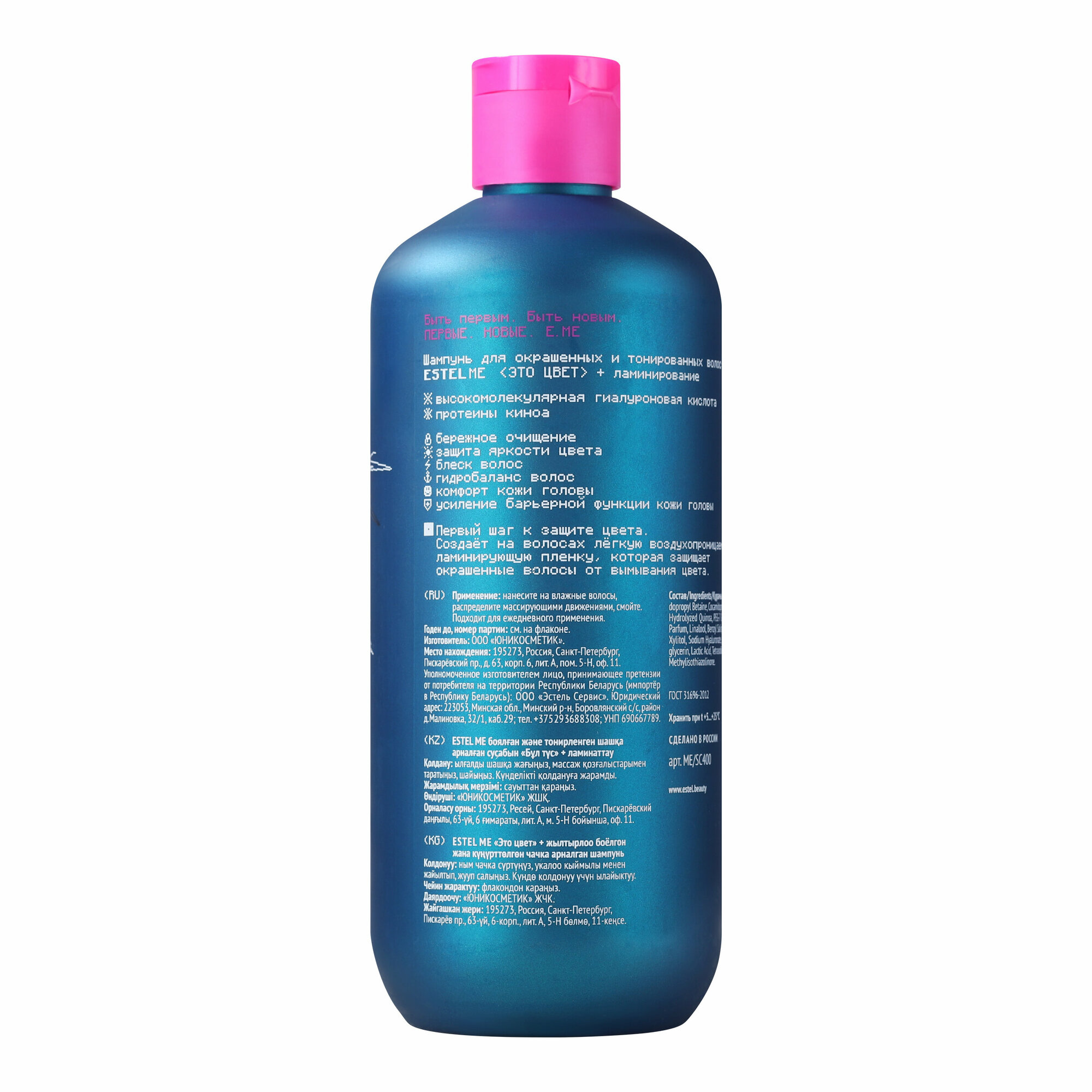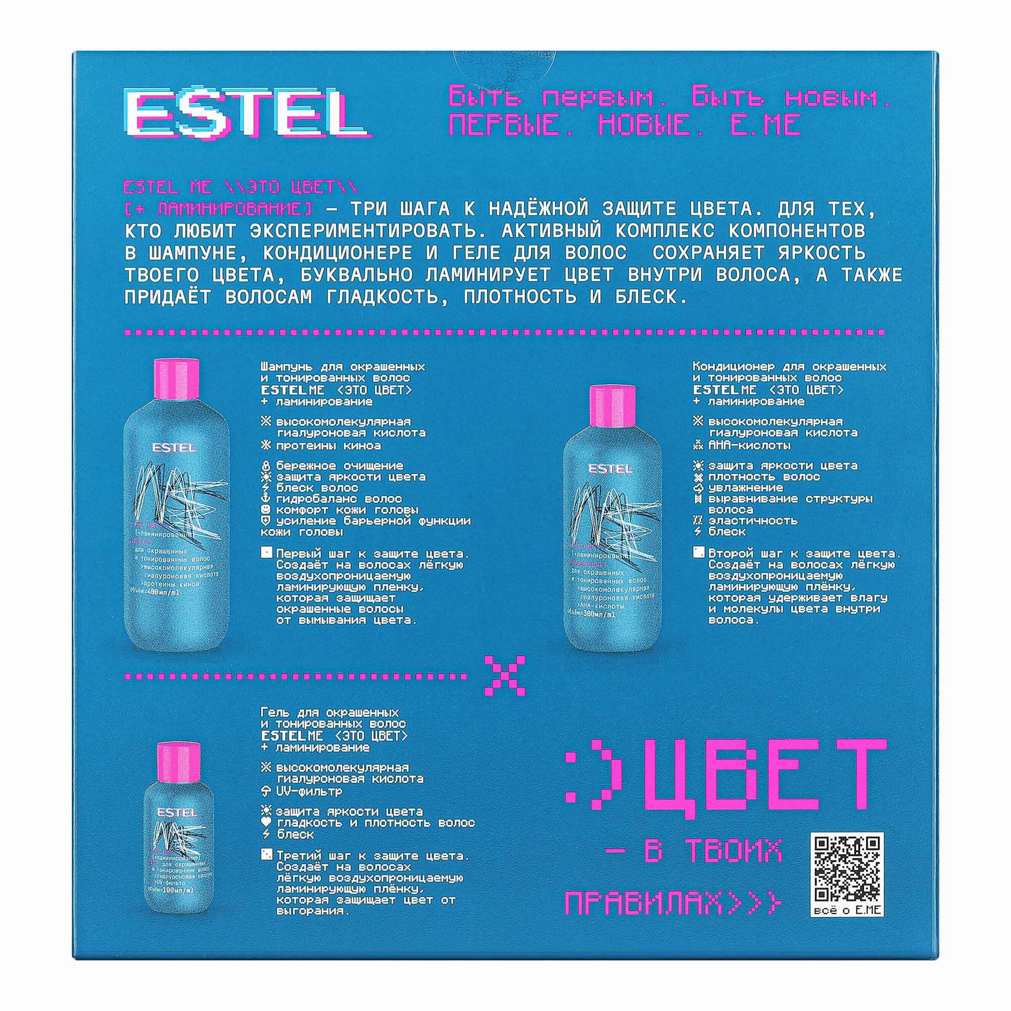 Купить Набор Estel E.ME Это цвет Ламинирование для окрашенных и тонированных волос Шампунь 400 мл, Кондиционер 300 мл, Гель 100 мл