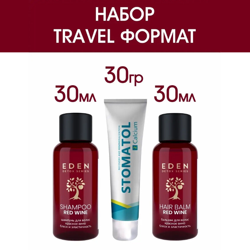 Набор дорожный EDEN DETOX TRAVEL Шампунь 30 мл, бальзам 30 мл, зубная паста STOMATOL Calcium 30мл интересное: